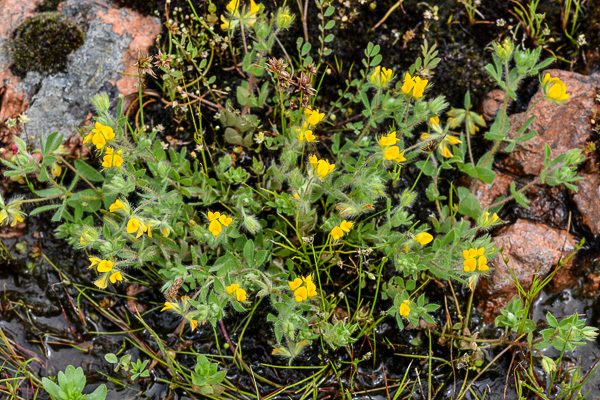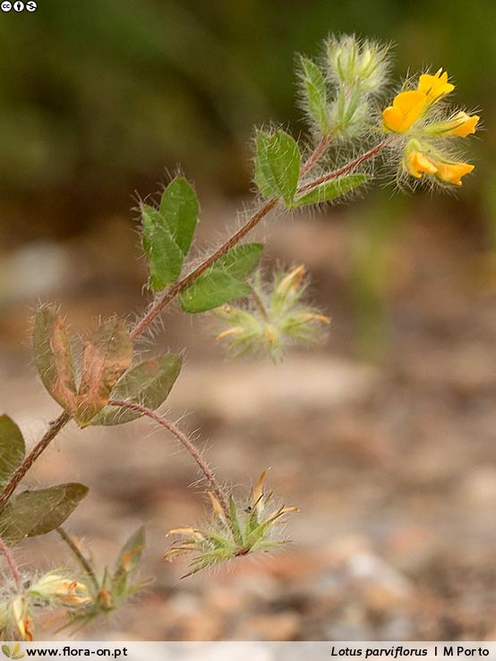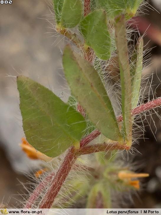 Lotus - Blüten gelb oder orange, Früchte nicht geflügelt, aufgeblasen oder eingeschnürt, Stängel/Blätter abstehend behaart, Blütenstandsstiel lang, Kelchzähne +/- gleich, viel länger wie die Kelchröhre, Frucht 3 - 4 mm lang