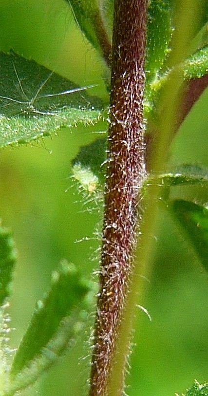 Stängel drüsig-zottig, im oberen Teil krautig, an der Basis verholzt