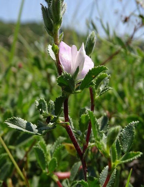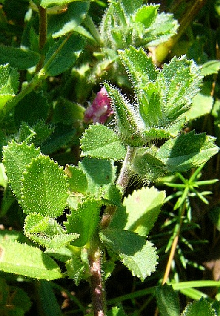 Hülsen kürzer als der Kelch Stängel aufrecht, drüsig-zottig, mit schmierigen Haaren, im oberen Teil krautig, an der Basis verholzt, Blättchen drüsenhaarig, länglich