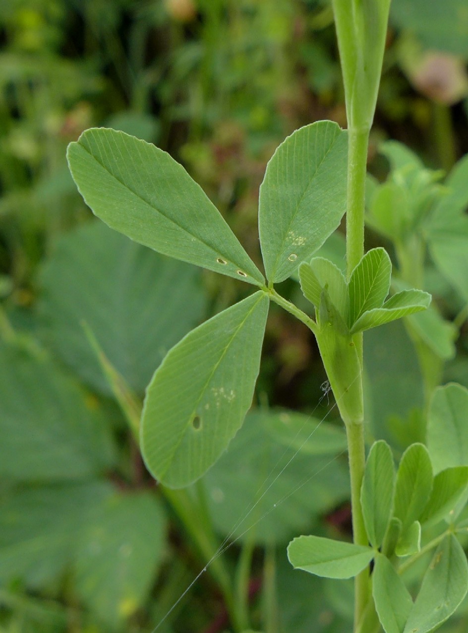 Blättchen so lang wie die beiden seitlichen, alle Blättchen fast sitzend > Stiel des mittleren Blättchen so lang wie die beiden seitlichen, alle Blättchen fast sitzend