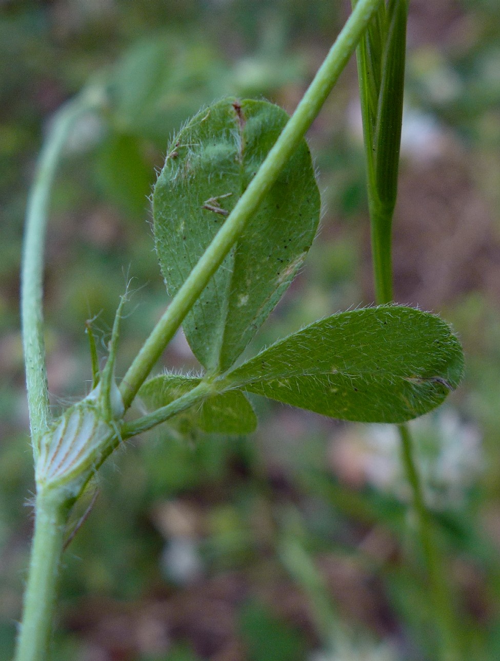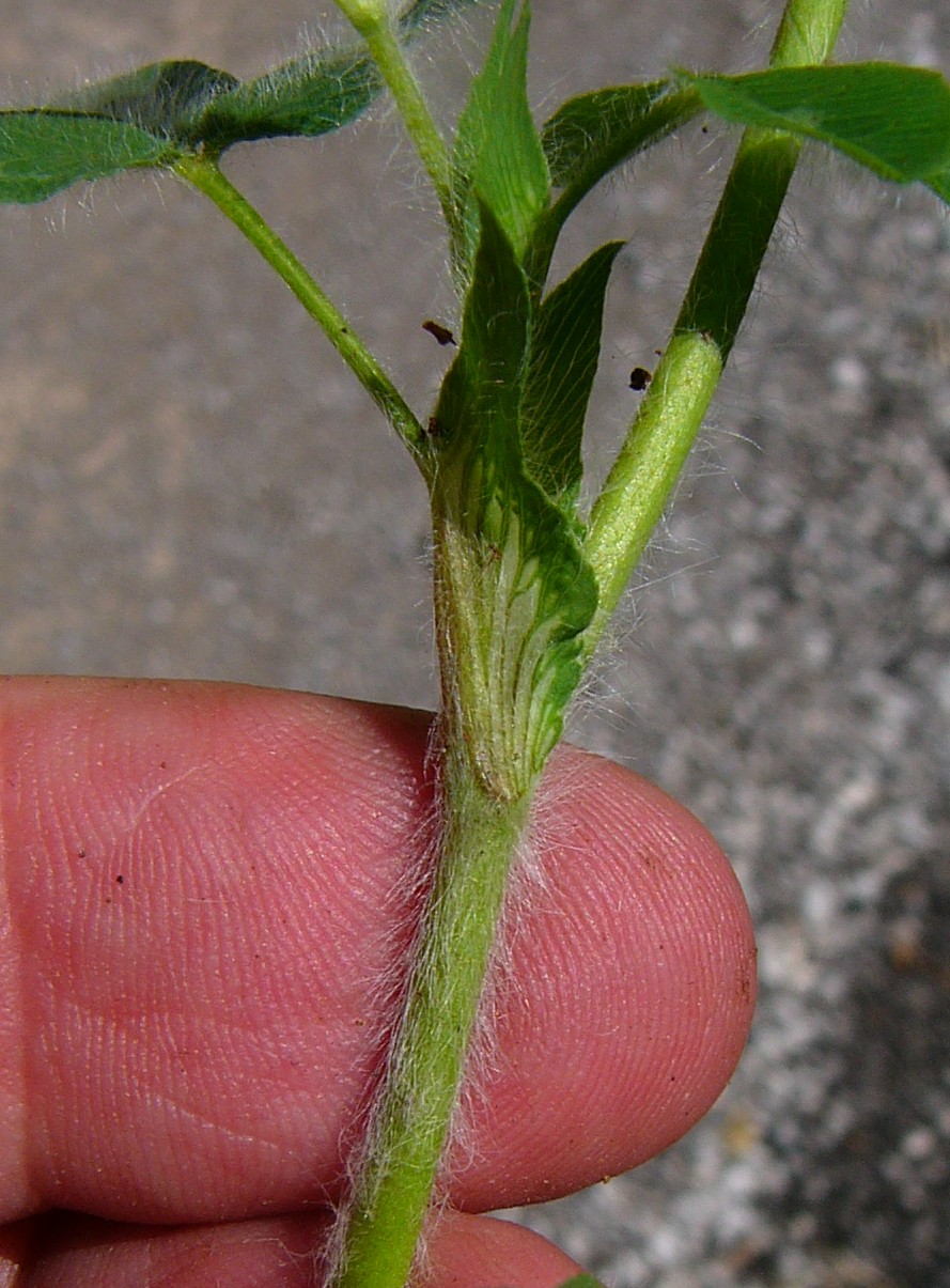 kahl Stängel abstehend behaart, Nebenblätter eiförmig, der freie Teil lanzettlich, krautig, größer als der mit dem Blattstiel verwachsene Teil Blätter 3- teilig, unterseits behaart