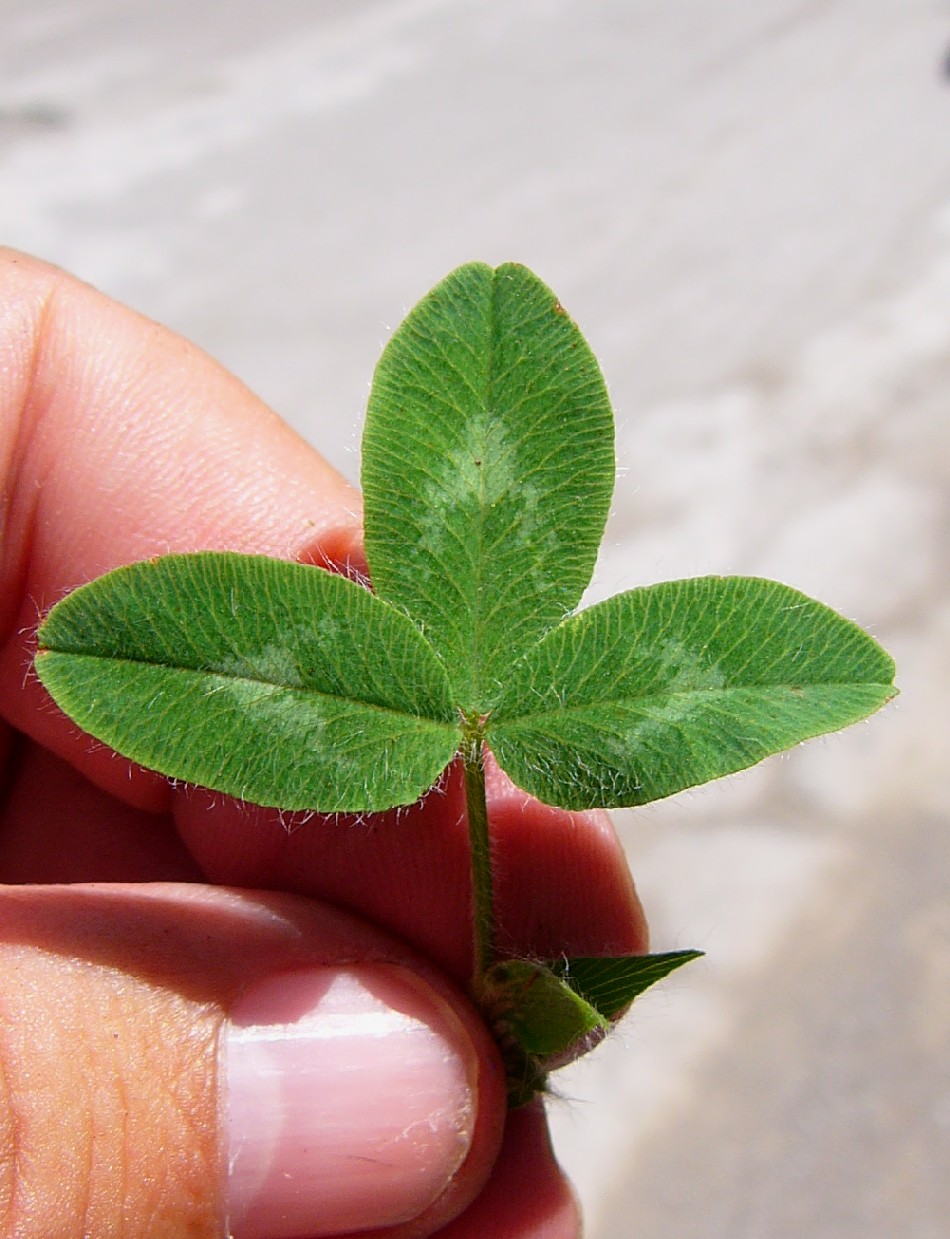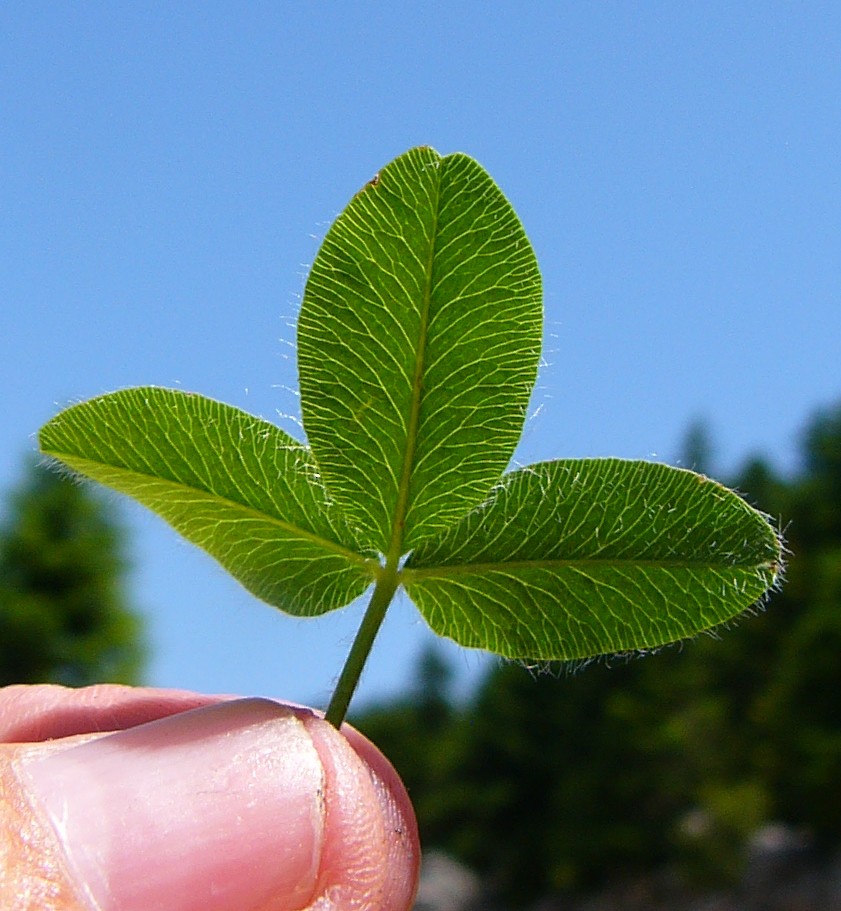 eine kurze (3 - 4 mm) Granne verschmälert, Blätter 3- teilig, Blättchen 2 mal so lang wie