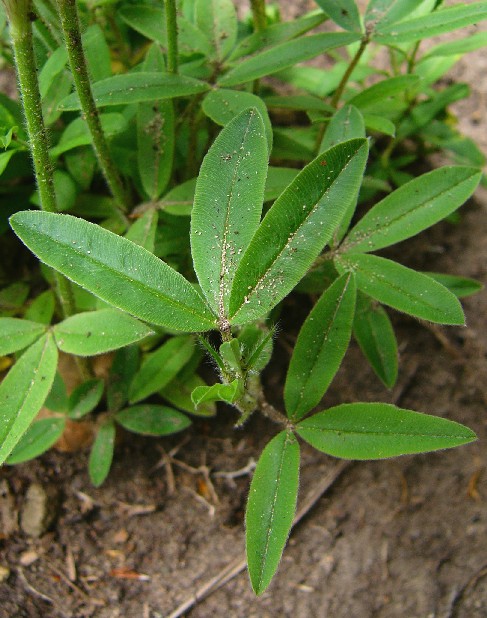 Stängel aufsteigend, dicht anliegend behaart Blättchen lanzettlich, ohne weiße Flecken