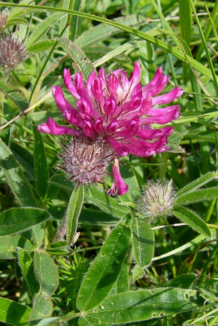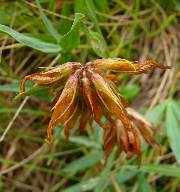 Blütenstand kopfig, 3 - 5 cm im Durchmesser Blütenköpfe mit 3 - 12 ca. 2 cm großen Blüten Blüten kurz gestielt Blüten hellgelb abblühend Pflanze mit essbarer Pfahlwurzel Nebenblätter lanzettlich, bis 40 mm lang, den Blütenstiel verdeckend, zum größten Teil mit den Blattstielen verwachsen, freier Teil linealisch, spitz Blättchen schmal lanzettlich, beiderseits kahl