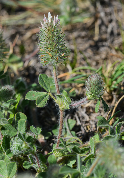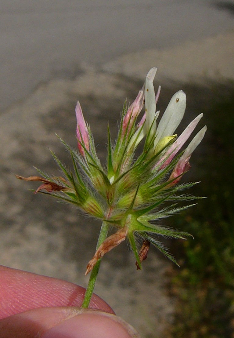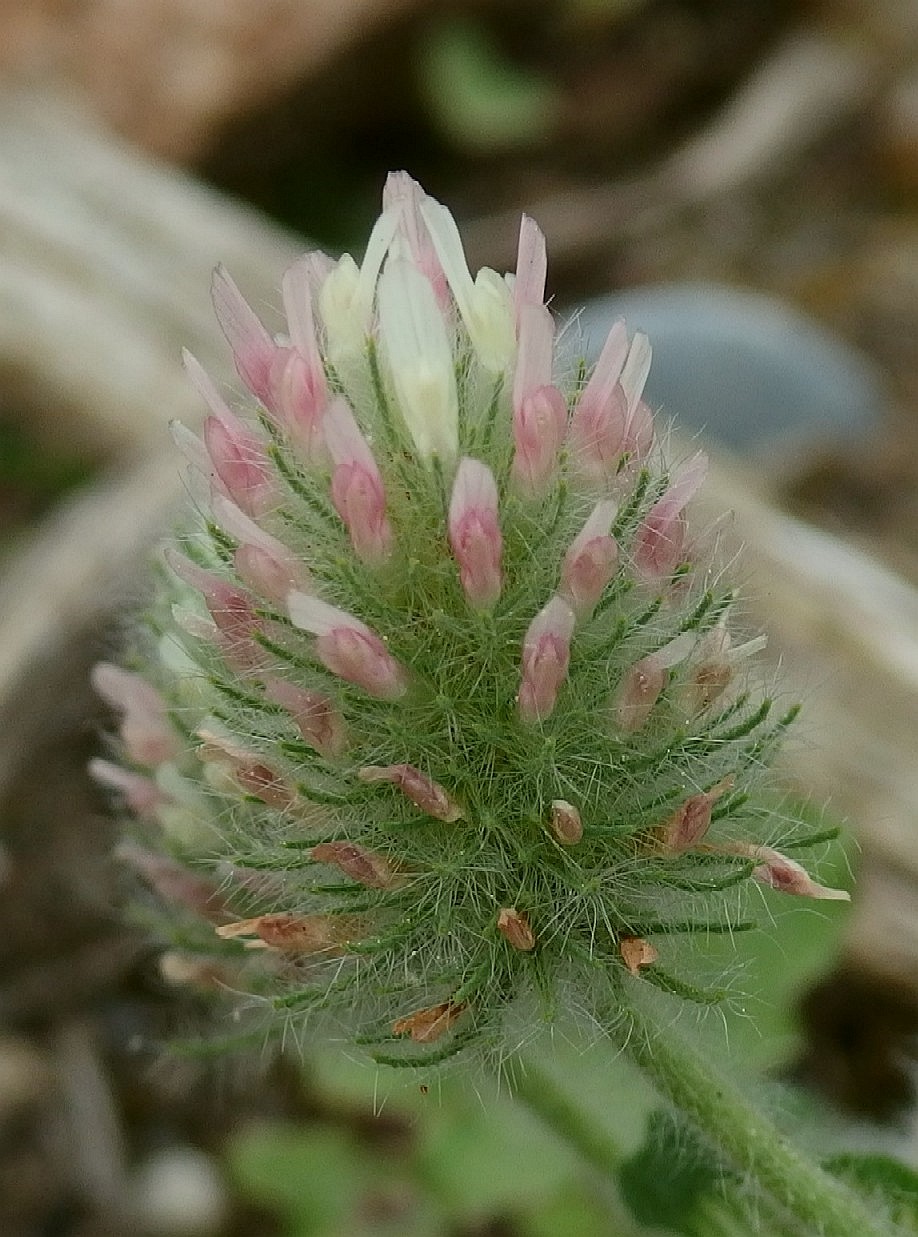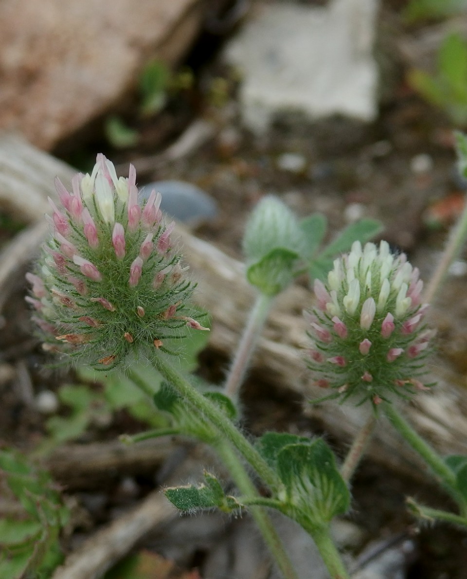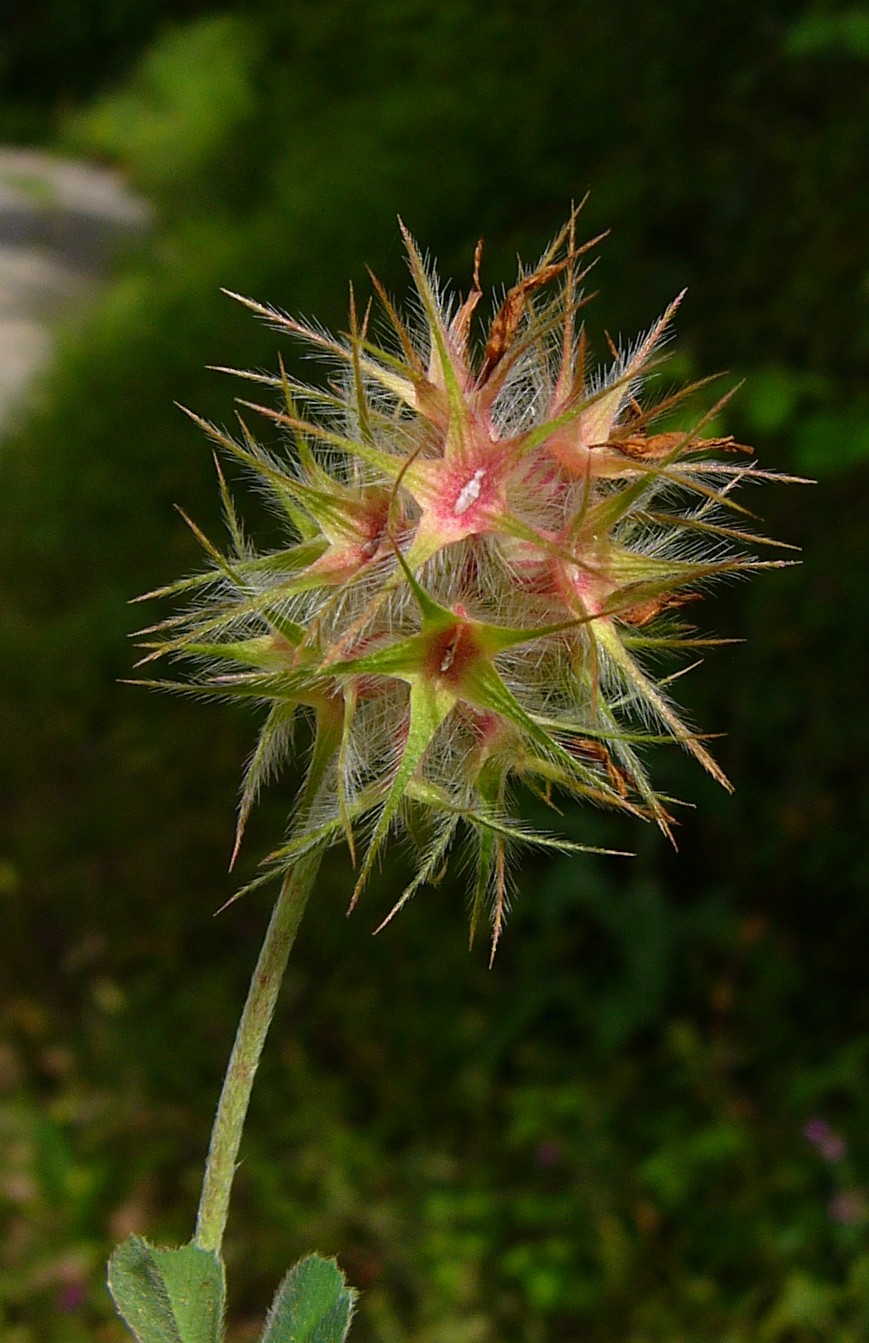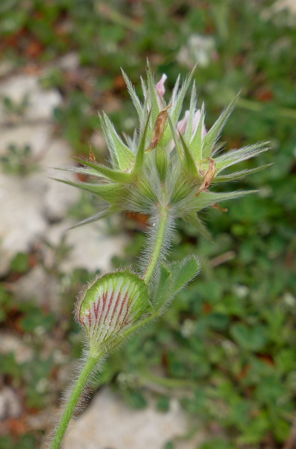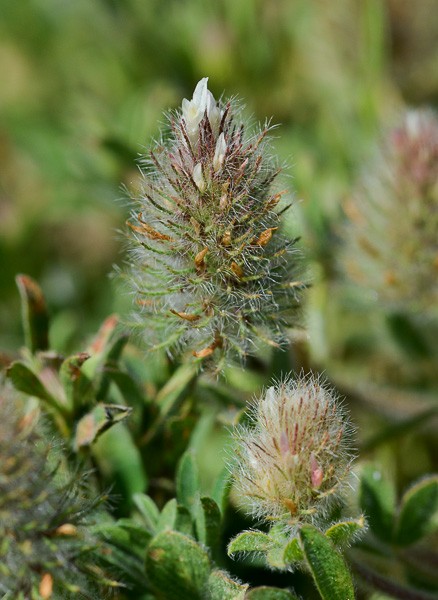 Trifolium - Blütenstand vielblütig, gestielt, ohne Hülle, Kelch zur Fruchtzeit nicht aufgeblasen, alle Blüten mit Krone, Blüten weiß oder rosa, +/- kürzer als der Kelch, Kelch zylindrisch, Kelchzähne federig behaart, Blätter behaart, Blättchen eilanzettlich, Nebenblätter stumpf, ohne pfriemliche Zipfel
