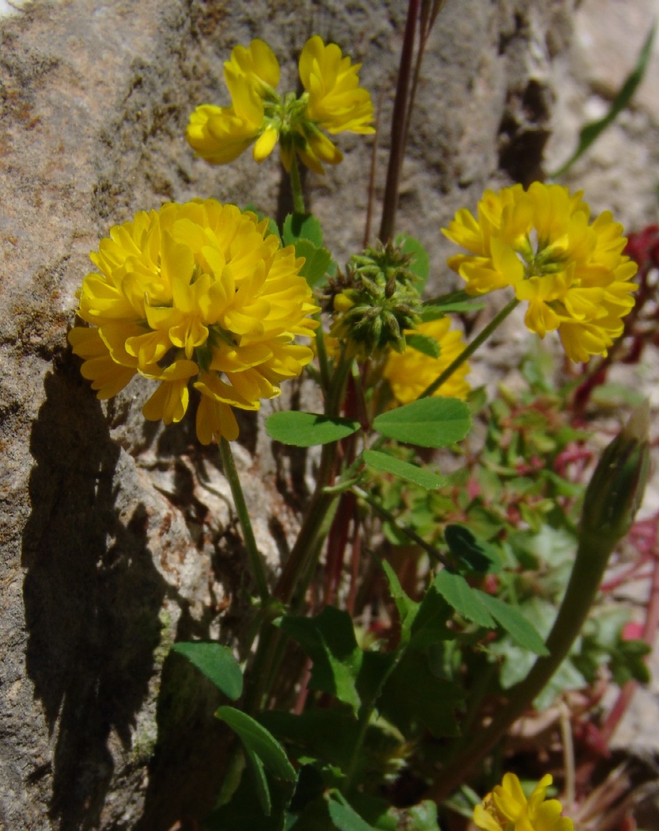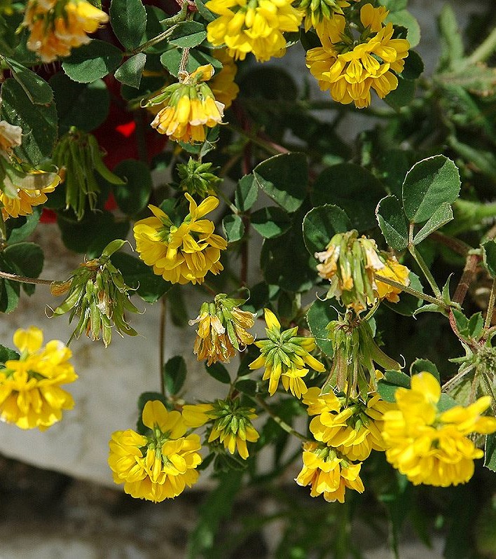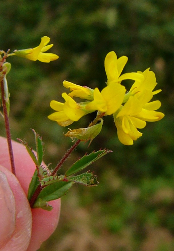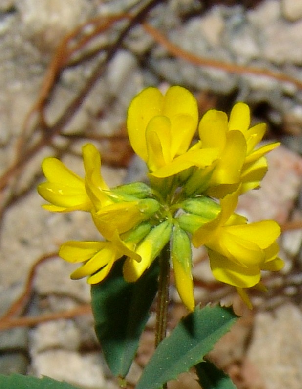 Köpfchen gestielt, Blüten gelb, ca. 3 mm lang gestielt, Kelch 3 - 4 mm glockig, Kelchzähne verschieden lang, die kürzeren deutlich kürzer als die Kelchröhre