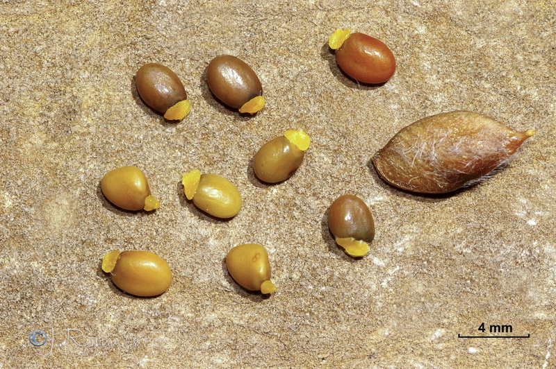 Hülsen eiförmig, 8 - 10 mm lang, 3 - 4 mm breit, mit 1 - 2 Samen