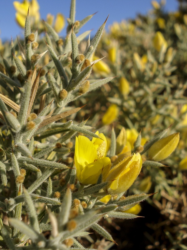 Ulex - Brakteolen max. 1, 5 mm breit, Kelch kahl oder angedrückt behaart, Dornen abstehend behaart