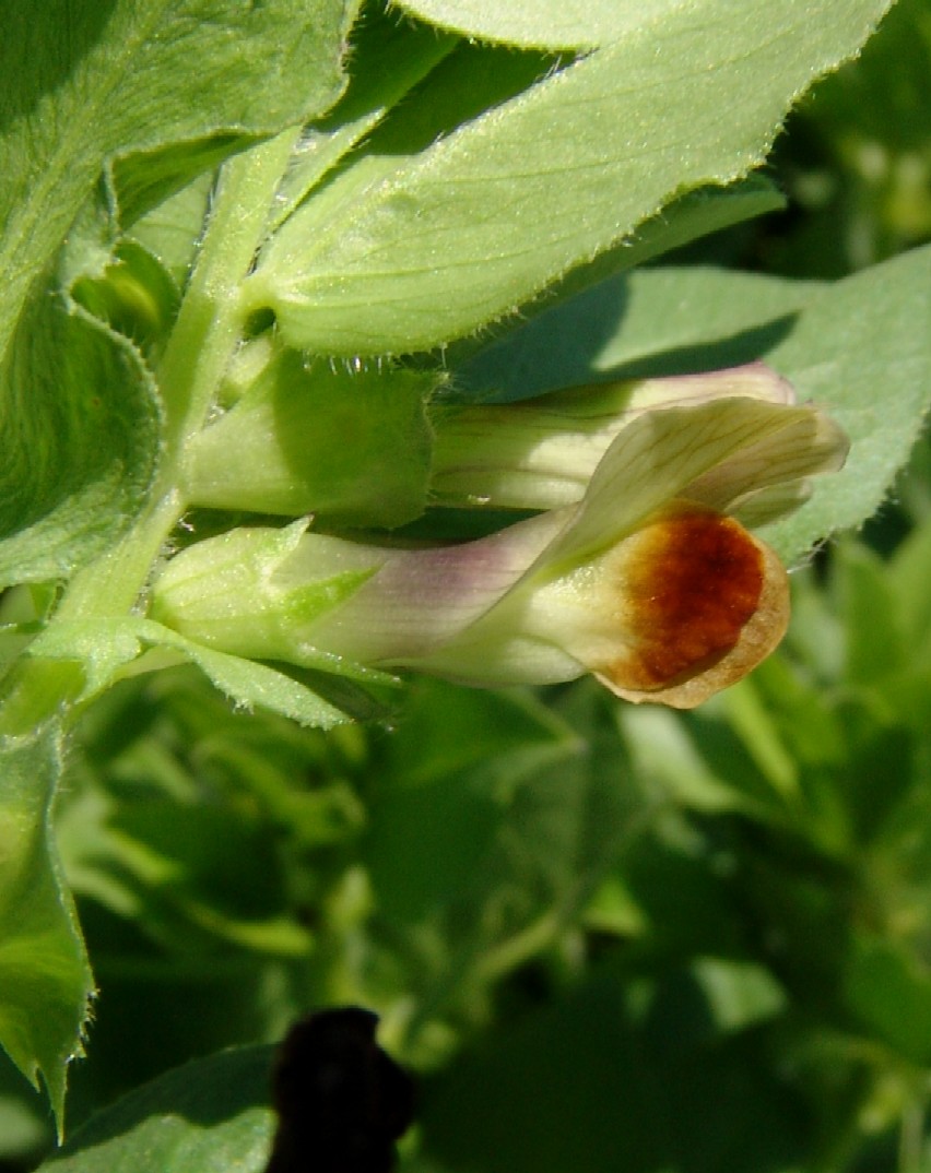 Blüten grünlich gelb, mit braunen Flügeln > Vicia melanops