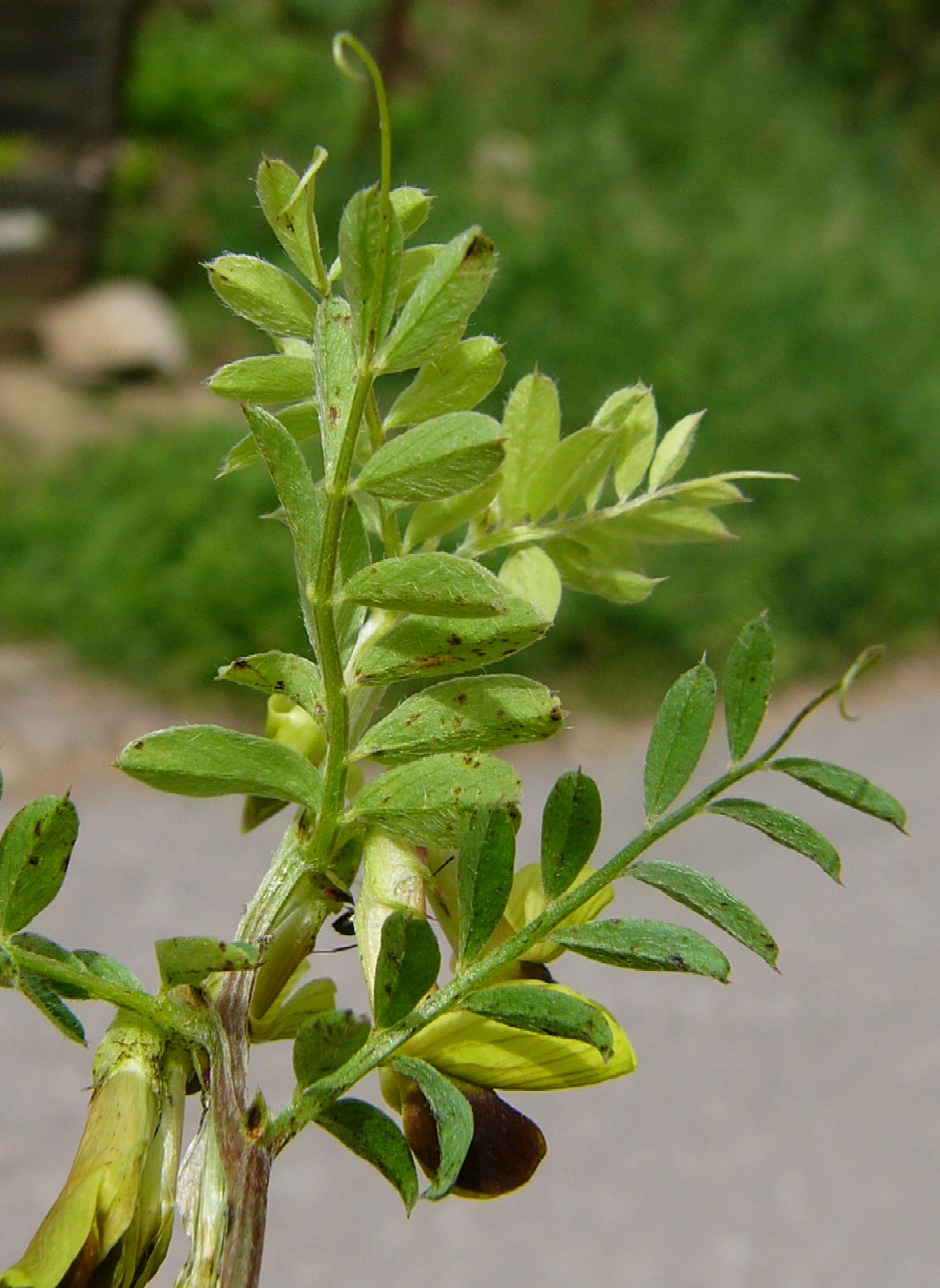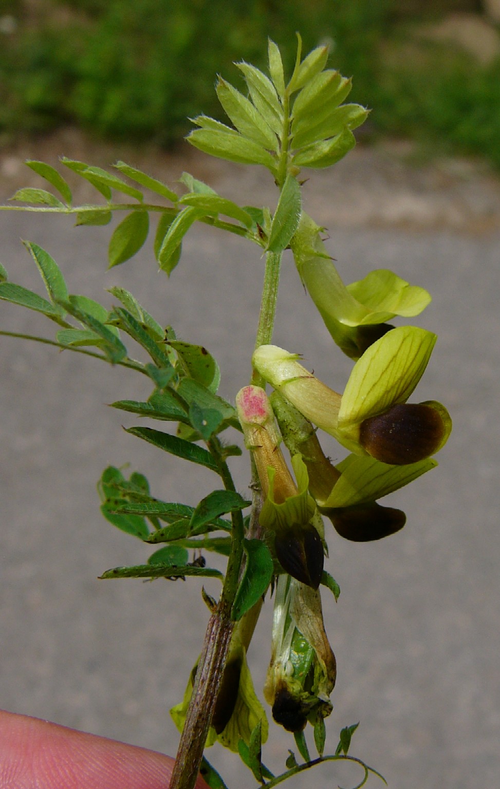 Vicia - Blüten grünlichgelb, mit braunschwarzen Flügeln