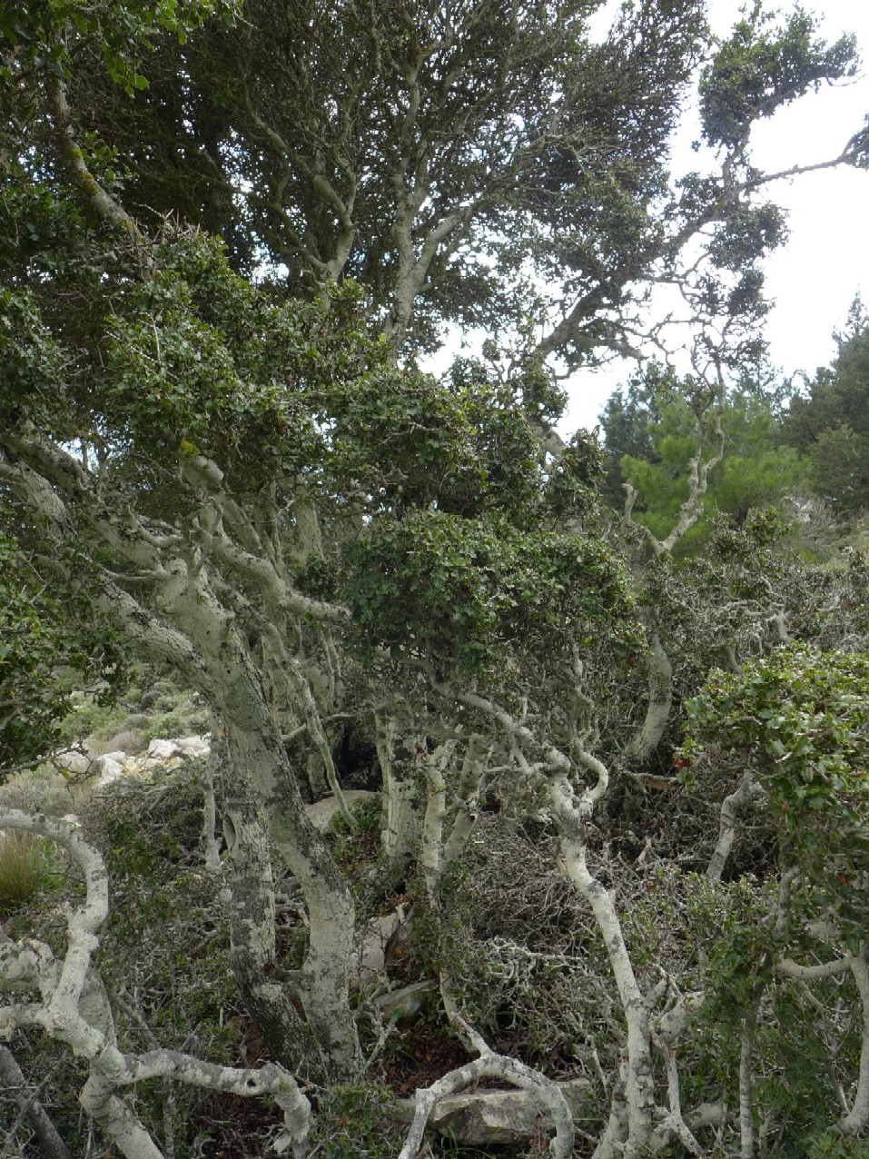 Zwergsträucher, Sträucher "Besonders im östlichen Mittelmeergebiet wächst sie auch baumförmig und kann dann Wuchshöhen von bis zu 12 Meter erreichen. Diese Form wird manchmal auch als eigene Art abgetrennt (Quercus calliprinos Webb.)" aus Wikipedia