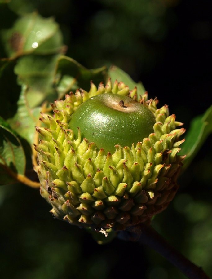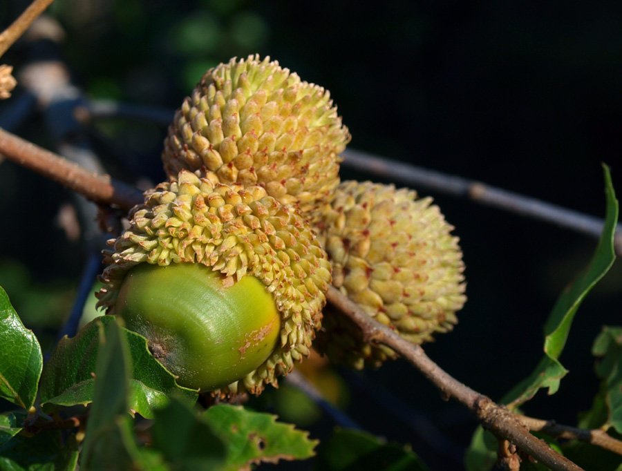Eicheln 3 - 4,5 cm lang, Fruchtbecher 2 cm im Durchmesser