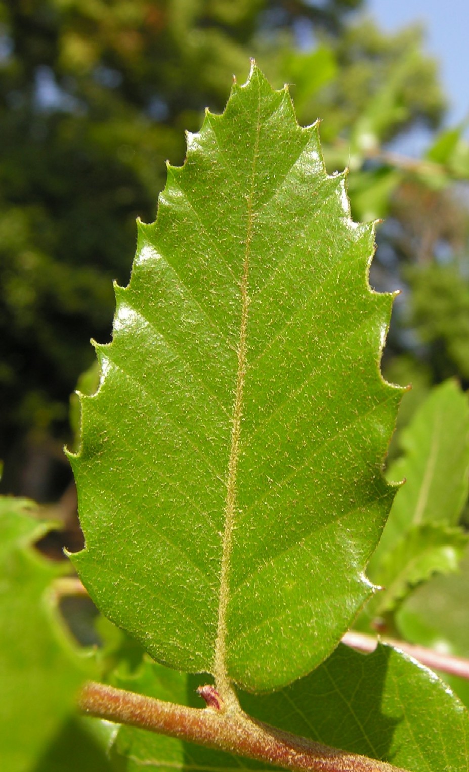 Blätter 1,5 - 3,5 cm lang, eiförmig, mit 5 - 8 Paar Zähnen |