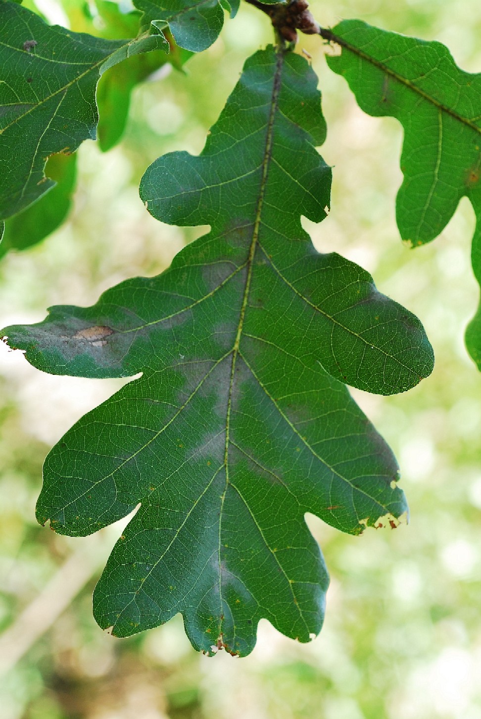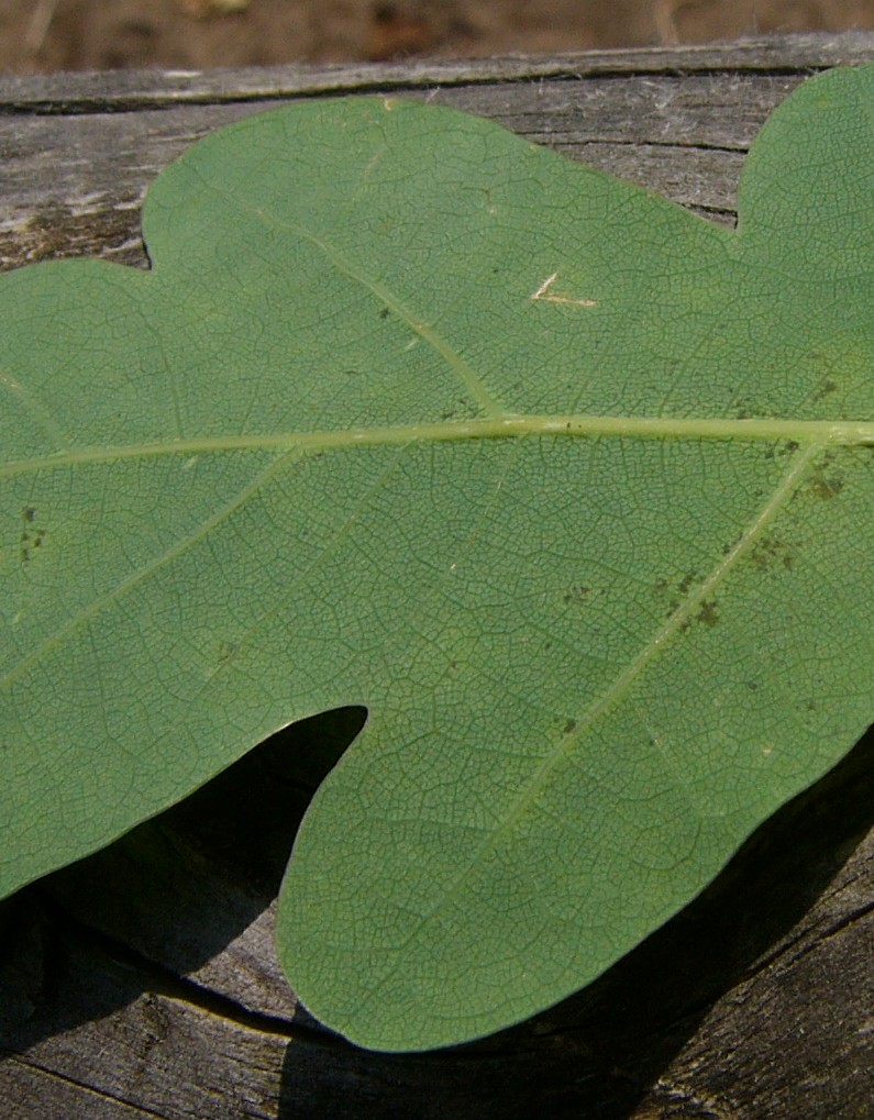 Blätter mit breiten Blattlappen, Blattadern gerade Blattunterseite blaugrün, kahl