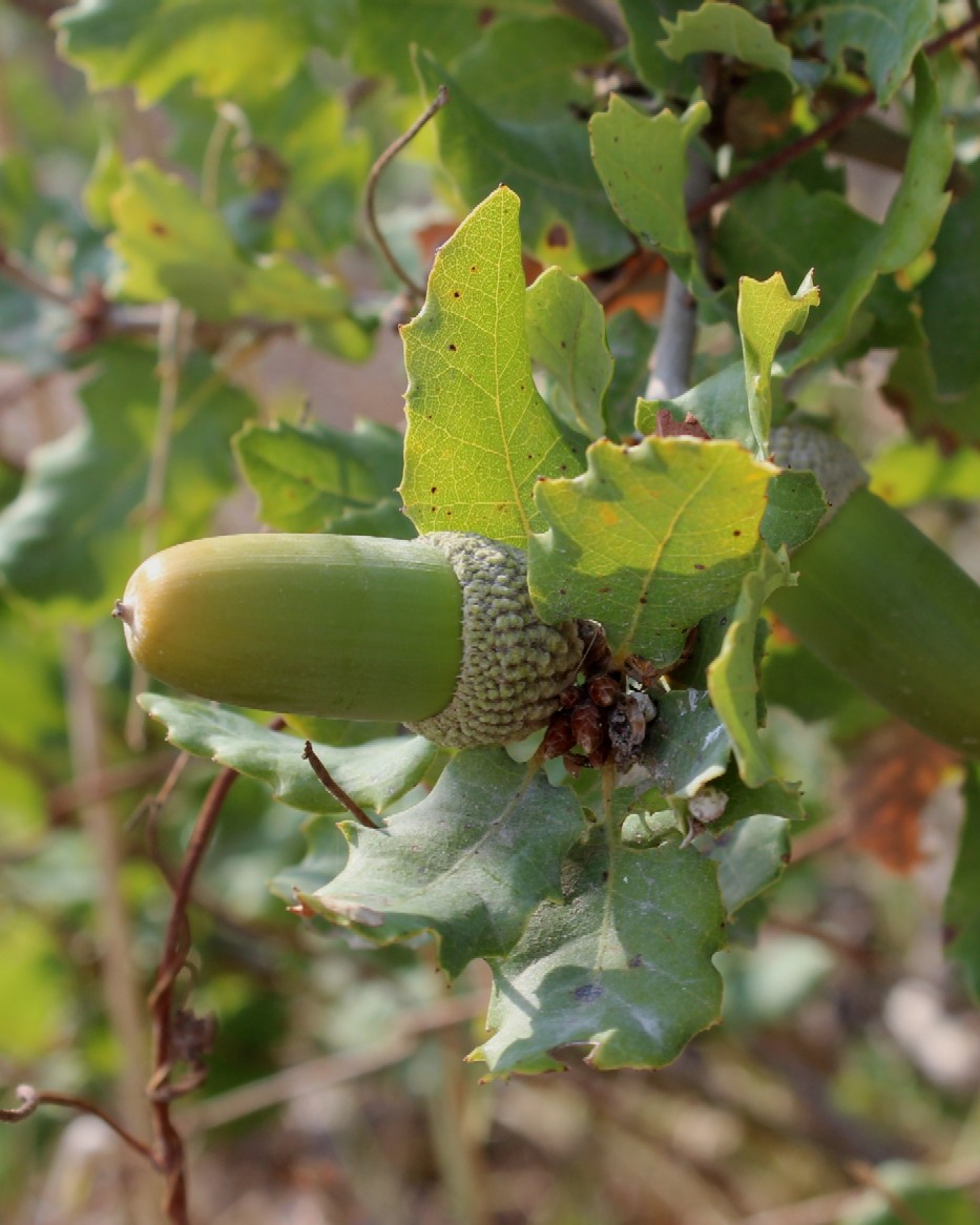 Reife Eicheln zu 2/3 sichtbar