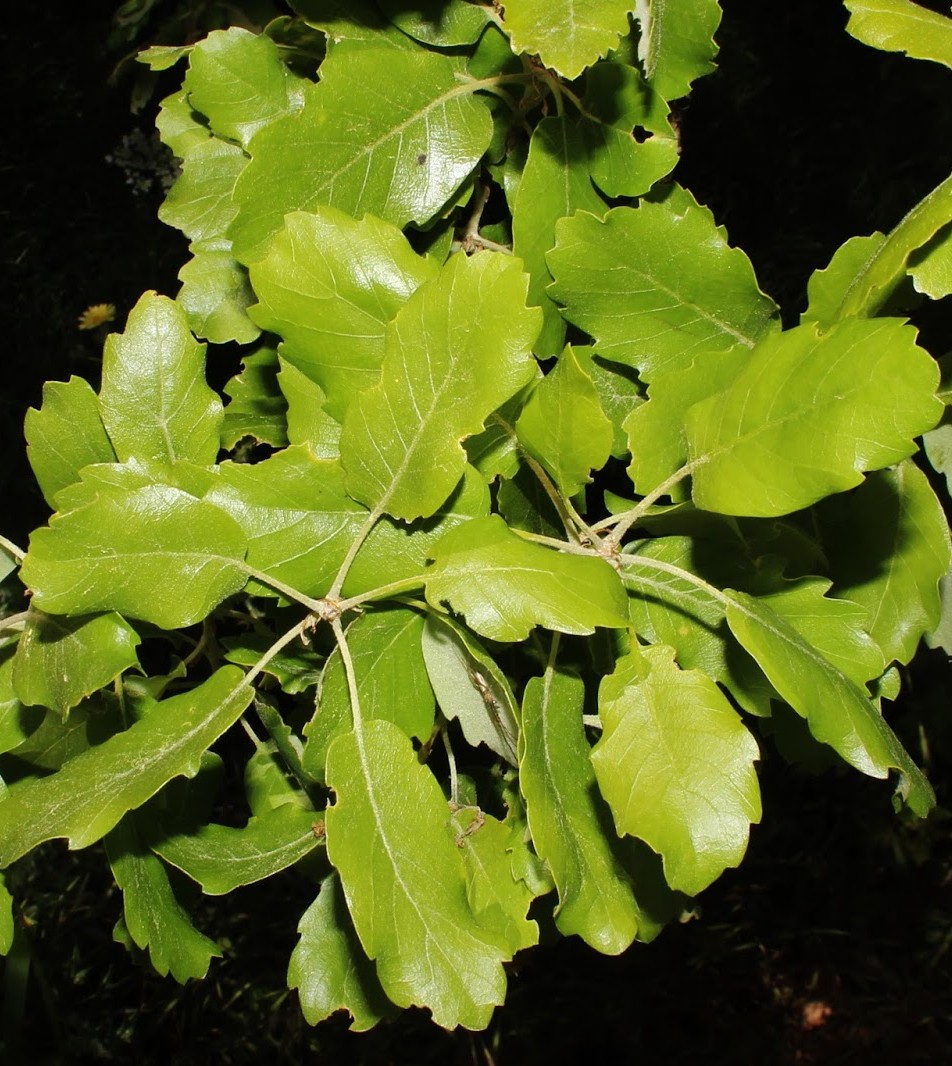 Blätter 6 - 15 cm lang, 3 - 9 cm breit, eiförmig, mit 5 - 14 Paar Seitennerven