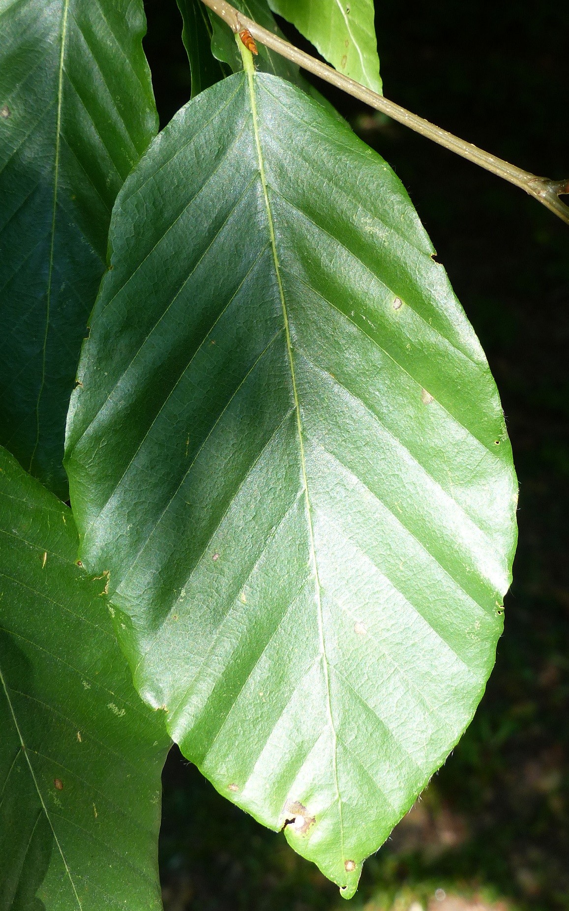 Blätter unterseits auf den Nerven oft stärker seidenhaarig als bei Fagus sylvestris