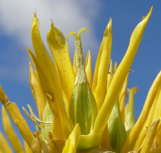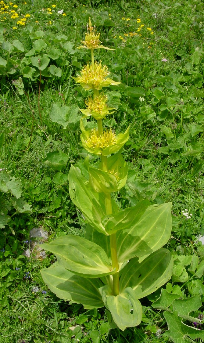 VI - VII, Magerrasen, Bergwiesen (900 -2200 m) Synonyme: English name: Nom francais: Nome italiano: Weltweite Verbreitung: In Spanien kommt eine Varietät mit orangen Kronblätter (Gentiana lutea var. aurantiaca (M.Laínz) M.Laínz = Gentiana lutea ssp. aurantiaca M. Laínz) vor: