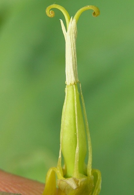 Teilblütenstände breit eiförmig, Scheinquirle mit 20 - 30 Blüten Staubbeutel frei, Staubfäden 11 - 17 mm lang Narben nach der Blüte spiralig eingerollt