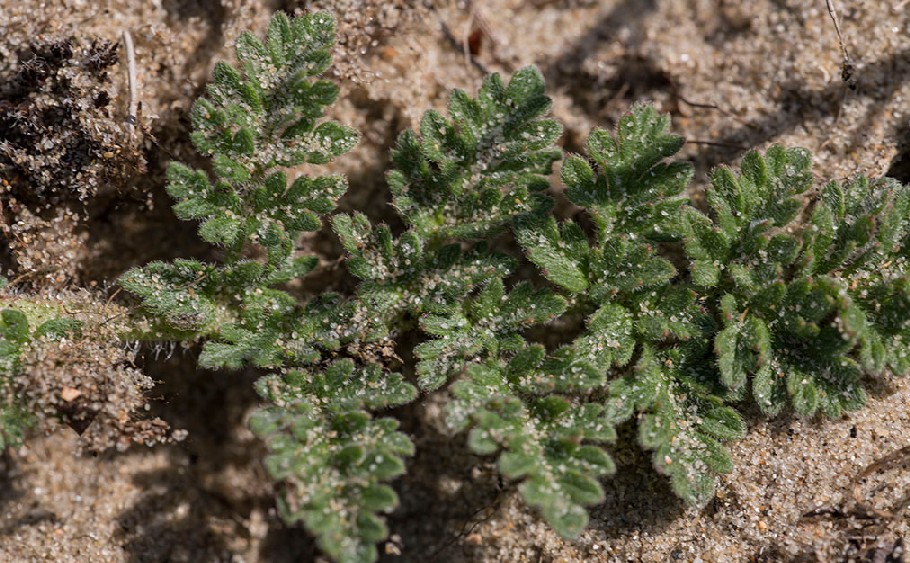 | Dünenpflanze Blättchen gefiedert Haare der Teilfrüchte stehen auf schwarzen Warzen > 5