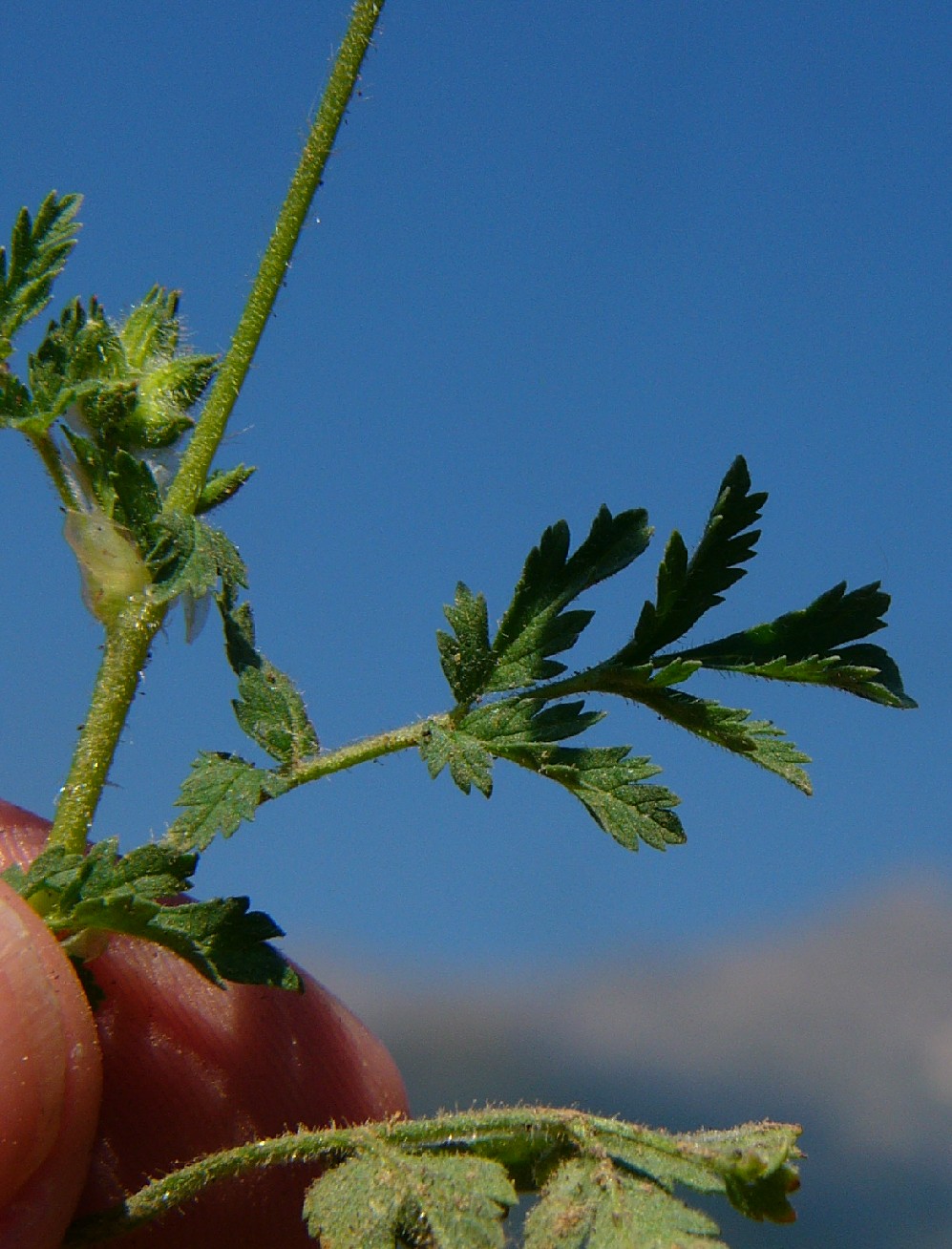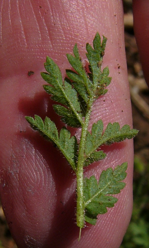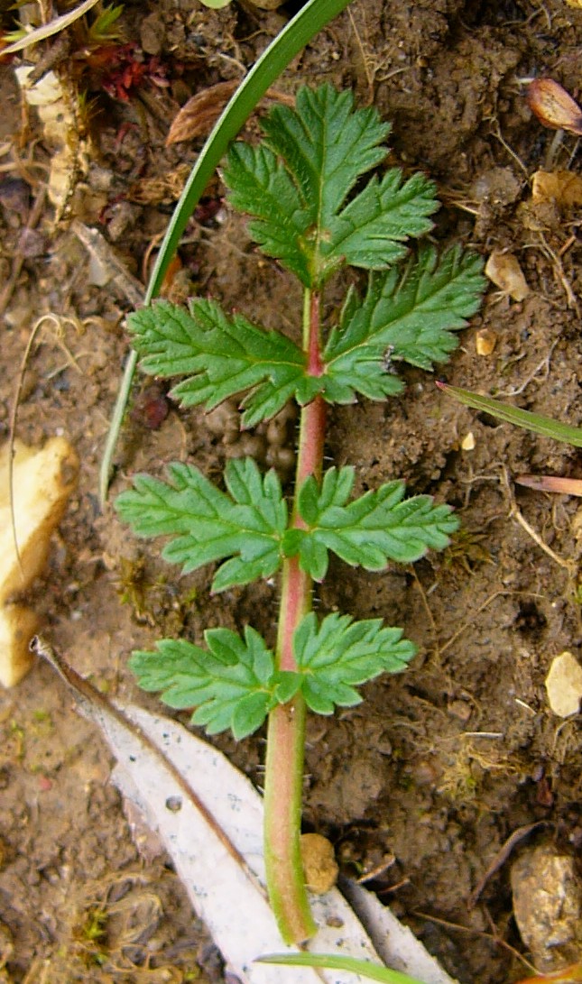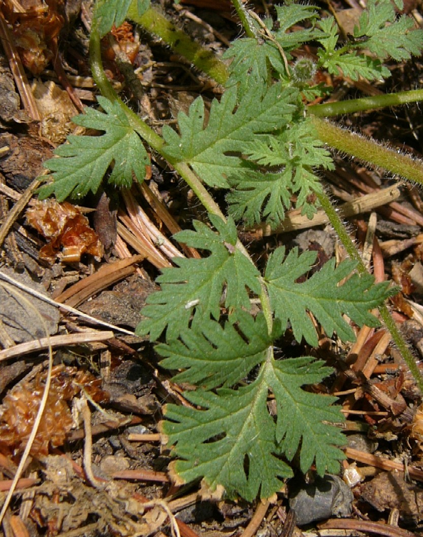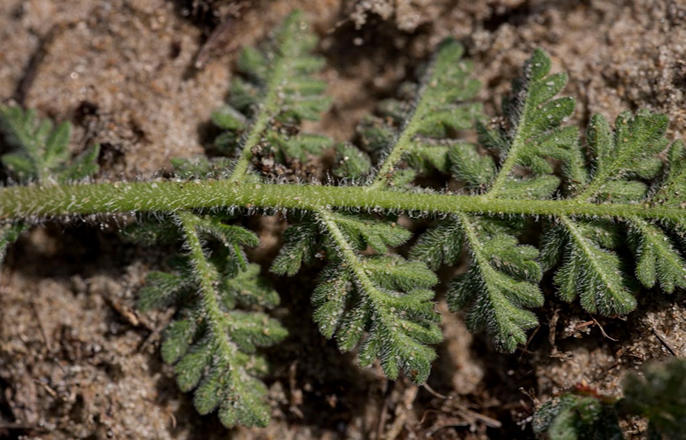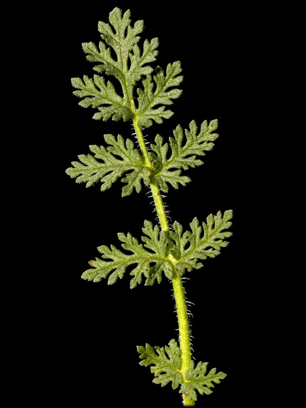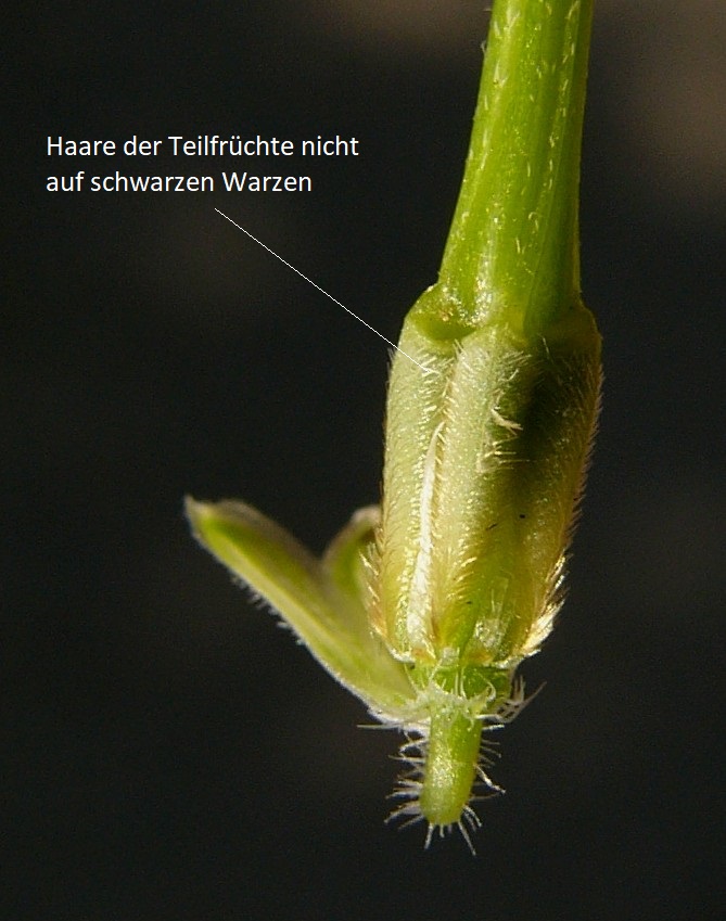 6 Blättchen fiederschnittig, Haare der Teilfrüchte stehen nicht auf schwarzen Warzen