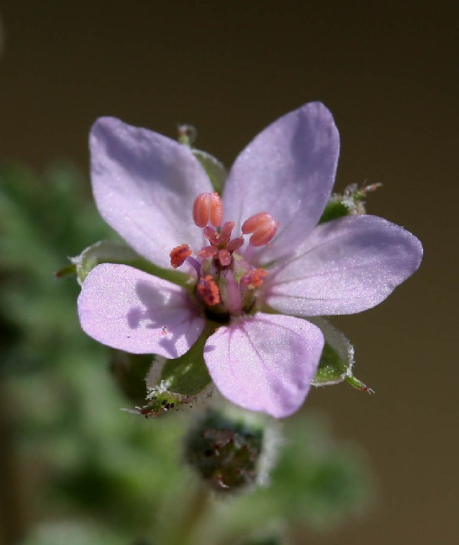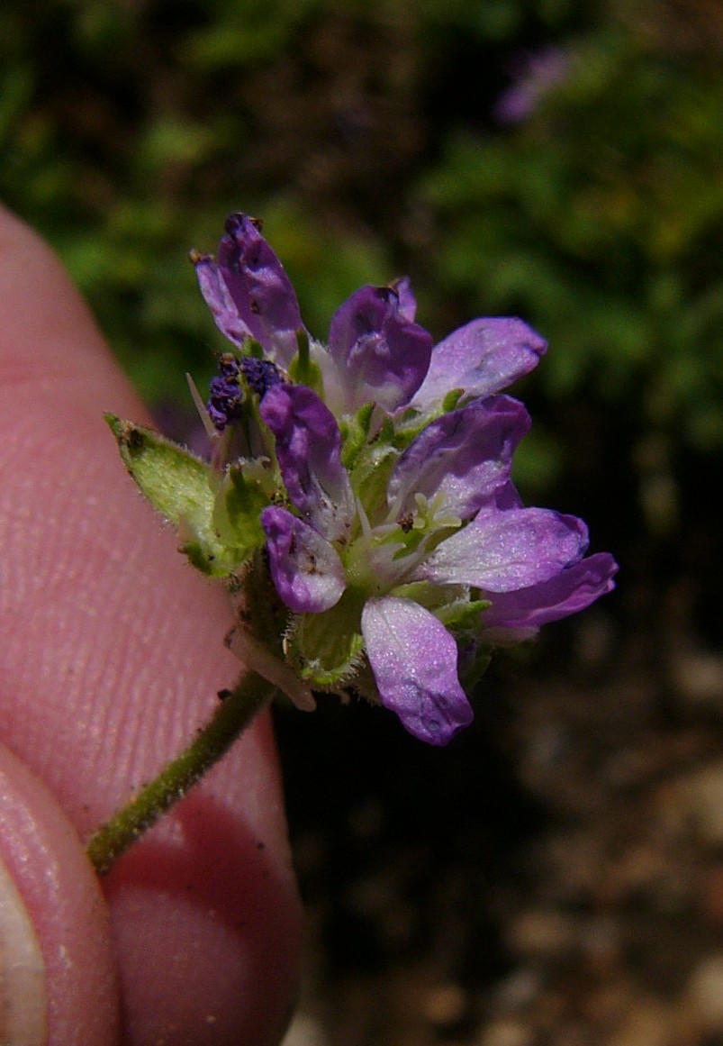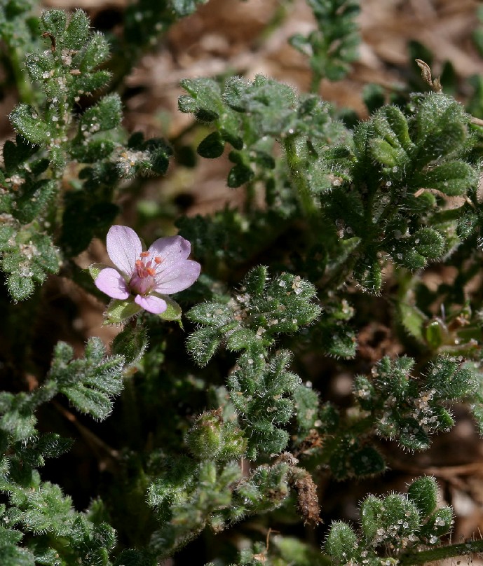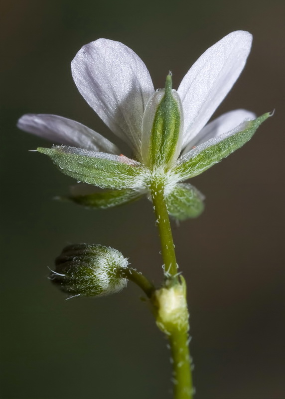 3 Blätter dicht drüsig, Blüten 7 - 12 mm im Durchmesser, +/- hellrosa