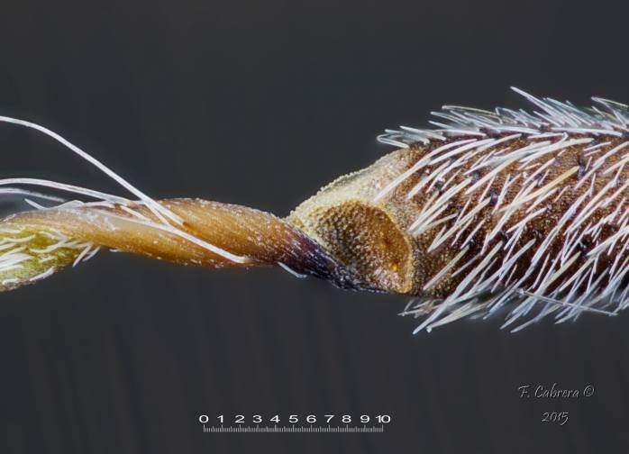 Blattrhachis mit borstigen, drüsenlosen Haaren,
