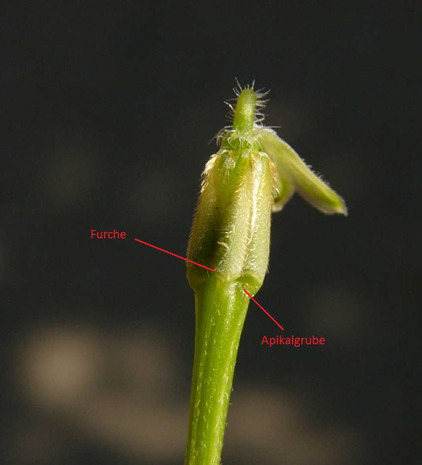 Frucht unterhalb der Apikalgrube ohne deutlicher Furche Stängel stark drüsig