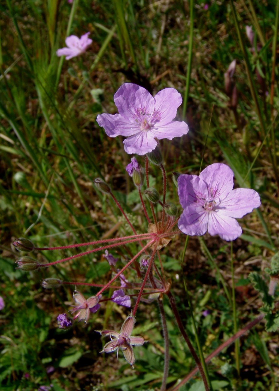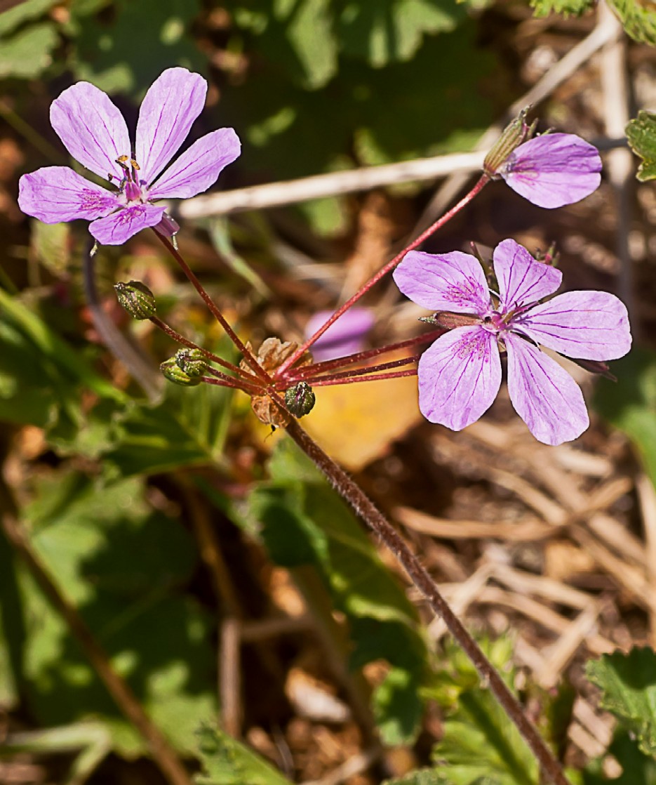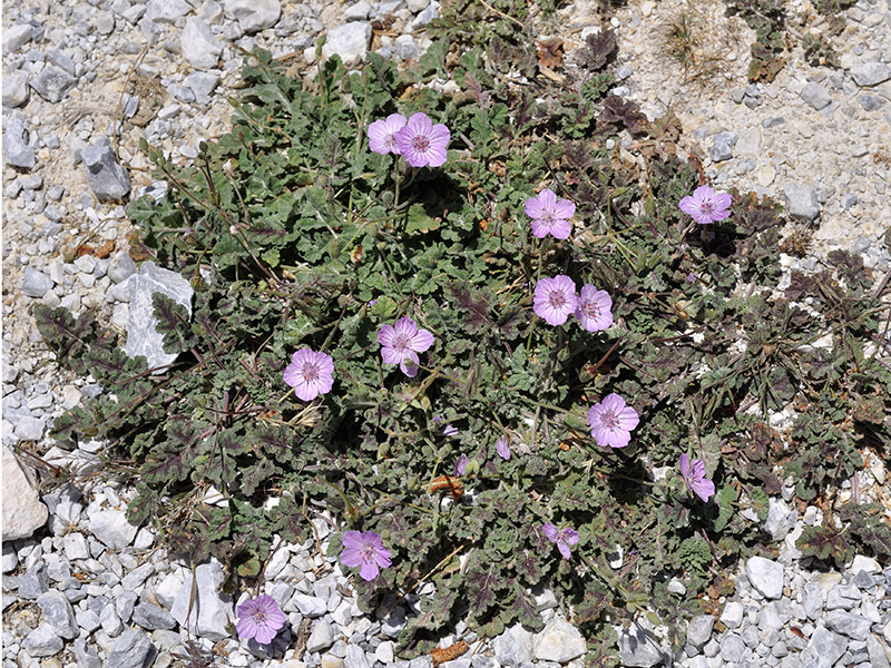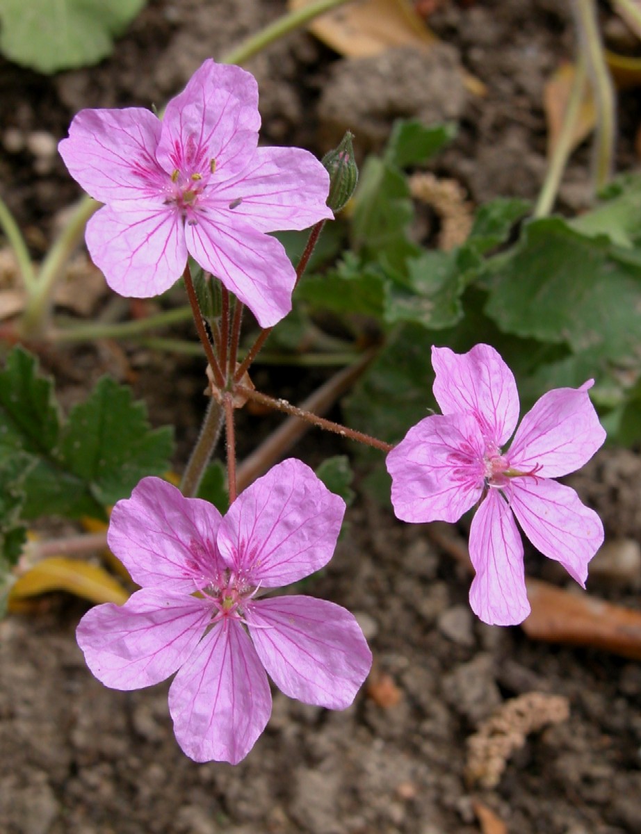 violett oder rosa, Blätter ungeteilt, fiederschnittig oder gelappt