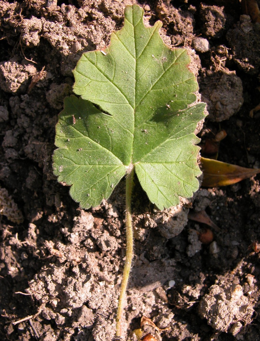 Obere Blätter 3- lappig, bis 4 cm lang, am Grund herzförmig