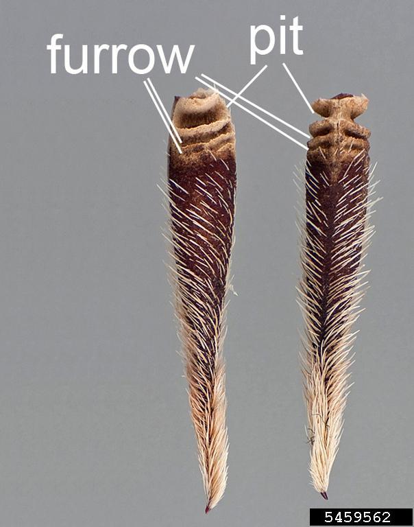 | Weit verbreitete Art Apikalgrube (pit) ohne Haare, mit 2 oder 3 Furchen (furrow) unterhalb > 4