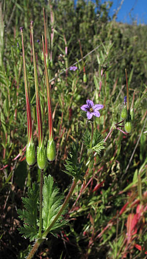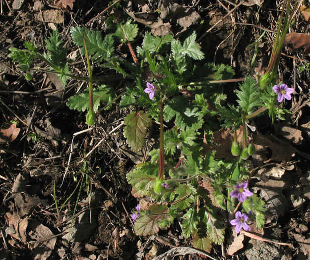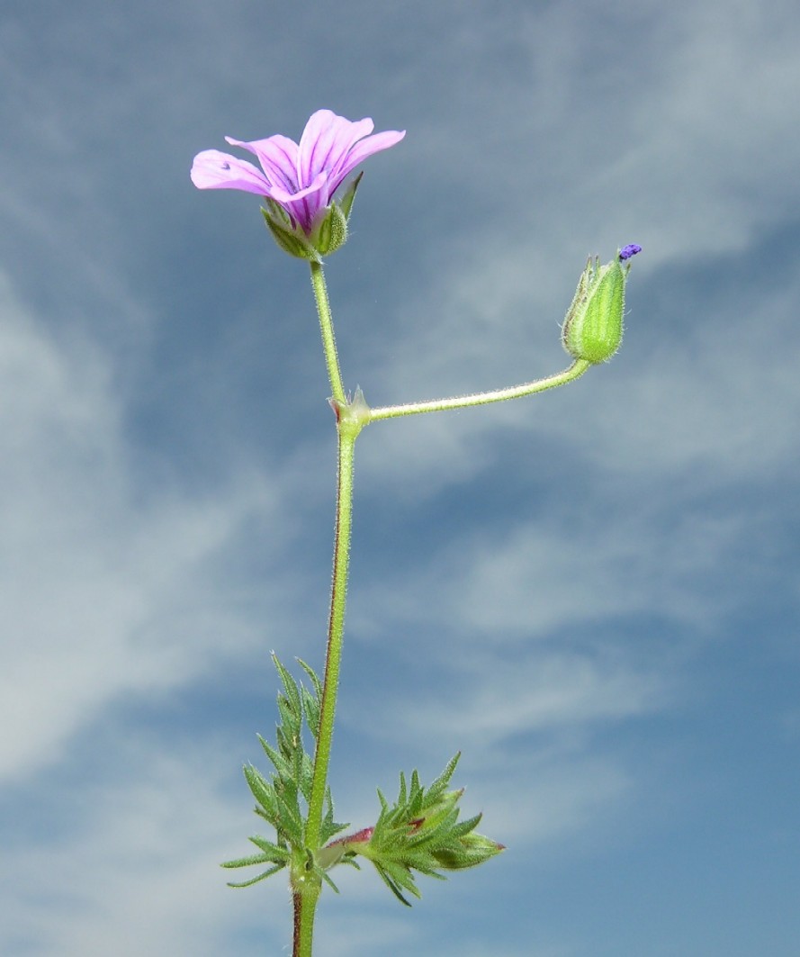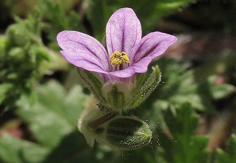 Erodium - Blüten rosa, zumindest einige Blätter fiederschnittig, länger als 1,5 cm, Kelchblätter drüsig
