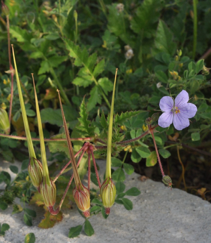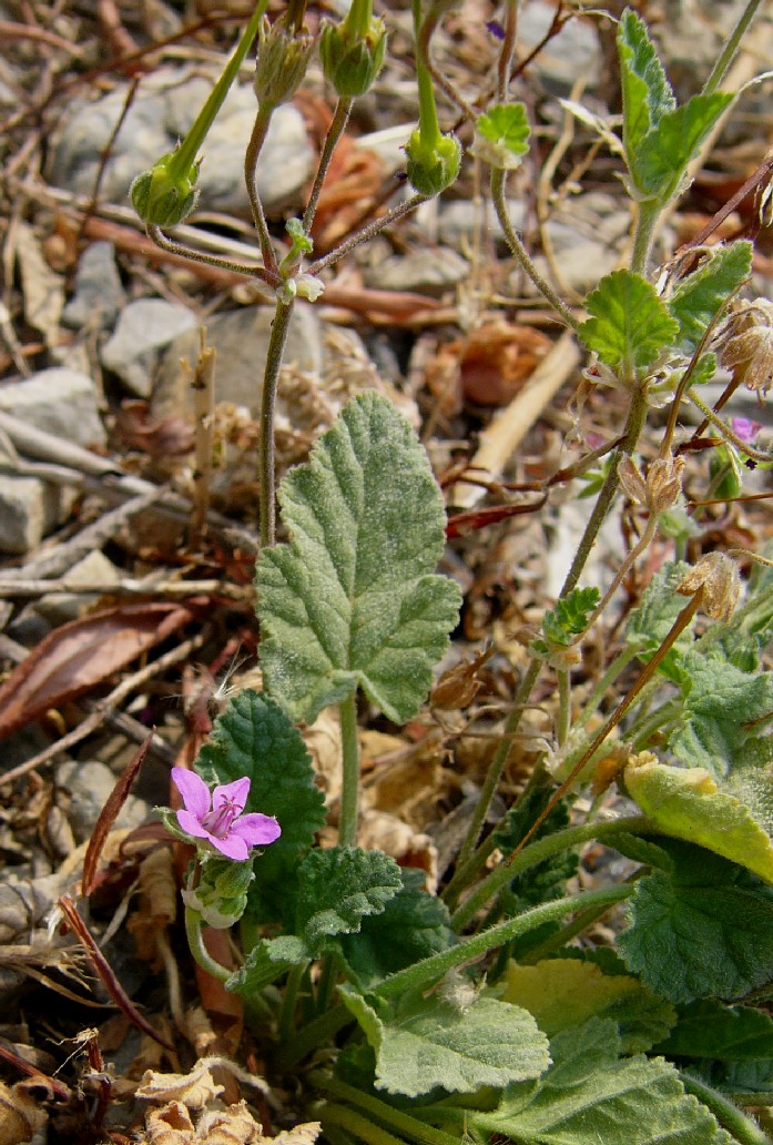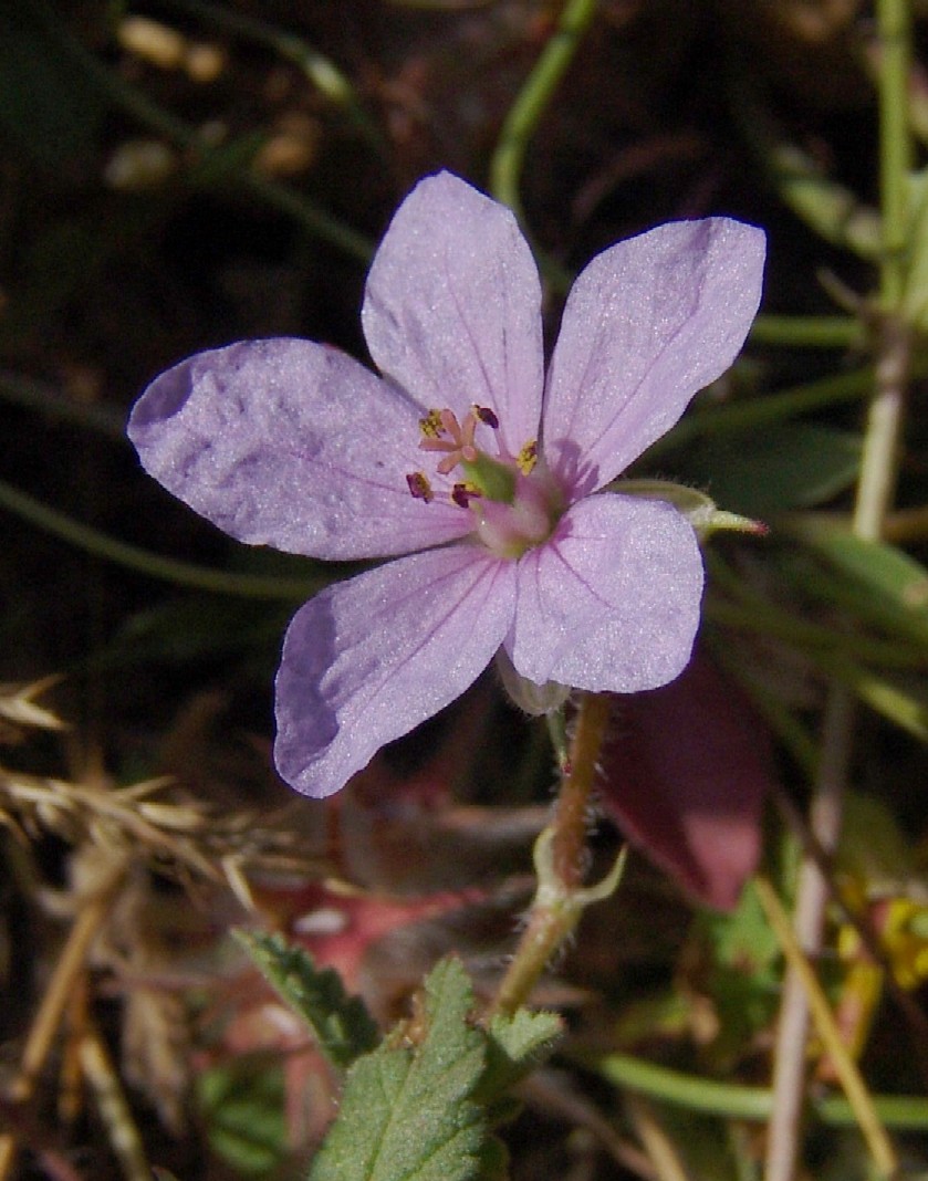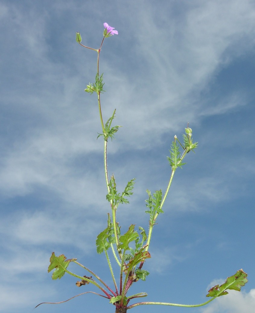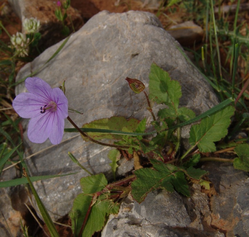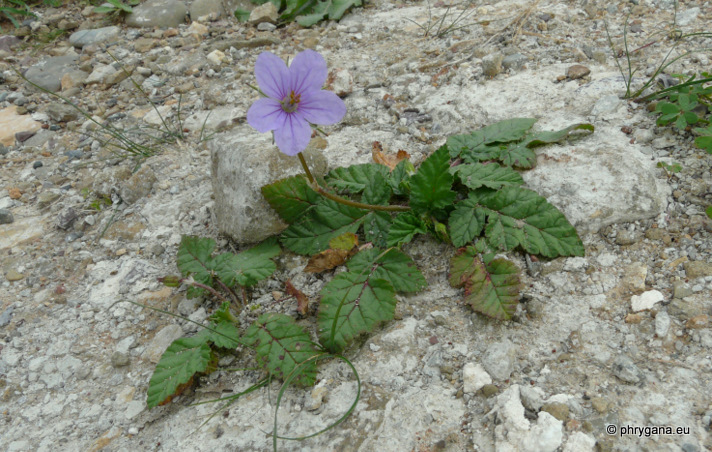 Erodium - Blüten weiß, violett oder rosa, Blätter ungeteilt, fiederschnittig oder gelappt, länger als 1,5 cm
