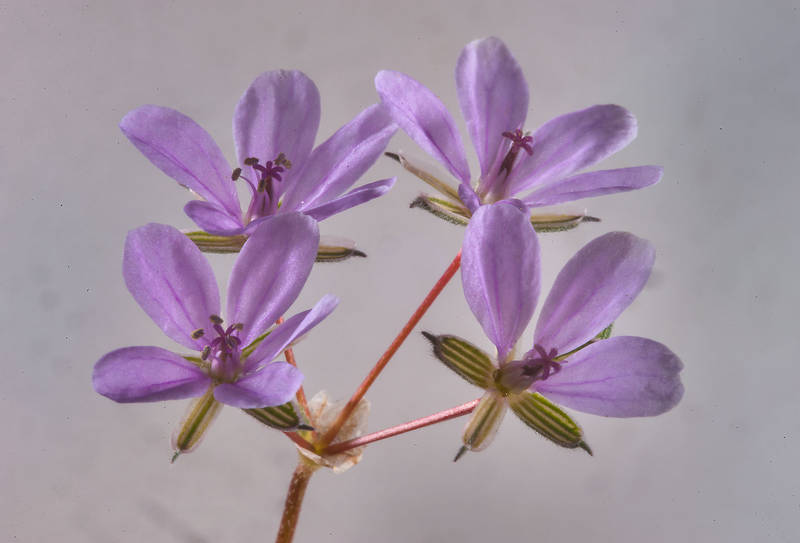 Erodium - Blüten rosa, zumindest einige Blätter fiederschnittig, länger als 1,5 cm, Kelch behaart, aber nicht drüsig