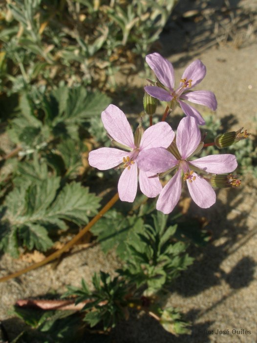 Erodium - Blüten weiß, violett oder rosa, Blätter ungeteilt, fiederschnittig oder gelappt