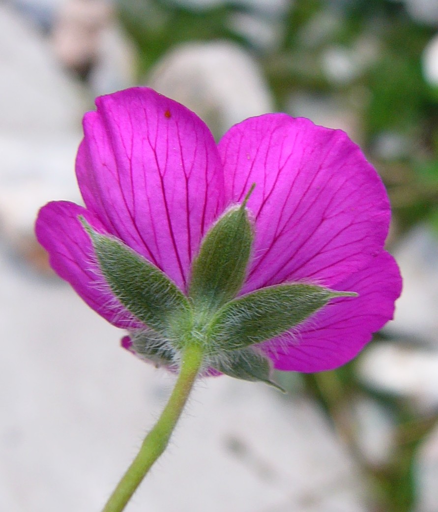 Selten sind die Blüten auch hellrosa oder fast weiß Kelchblätter abstehend weißhaarig, mit Granne