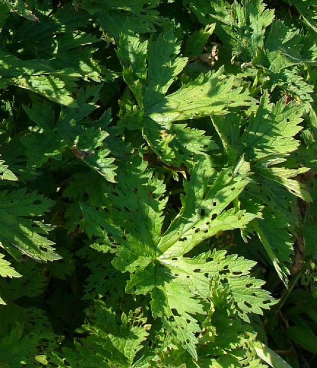 1 Blätter 15 - 30 cm breit, mit 7 spitz gezähnten Lappen