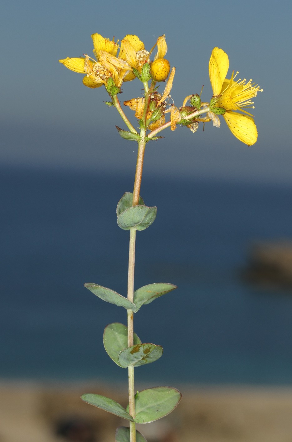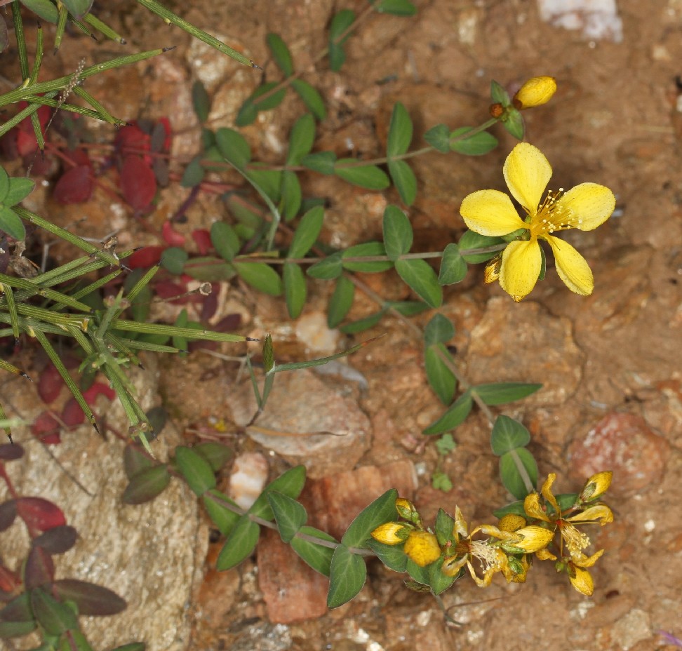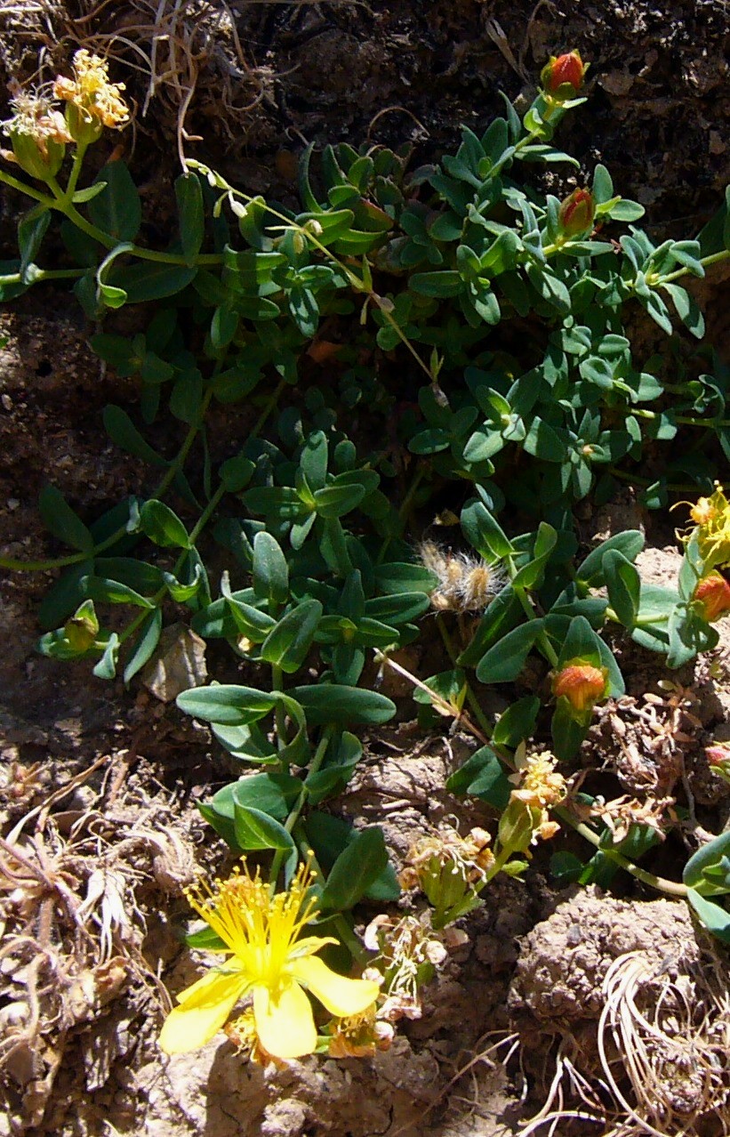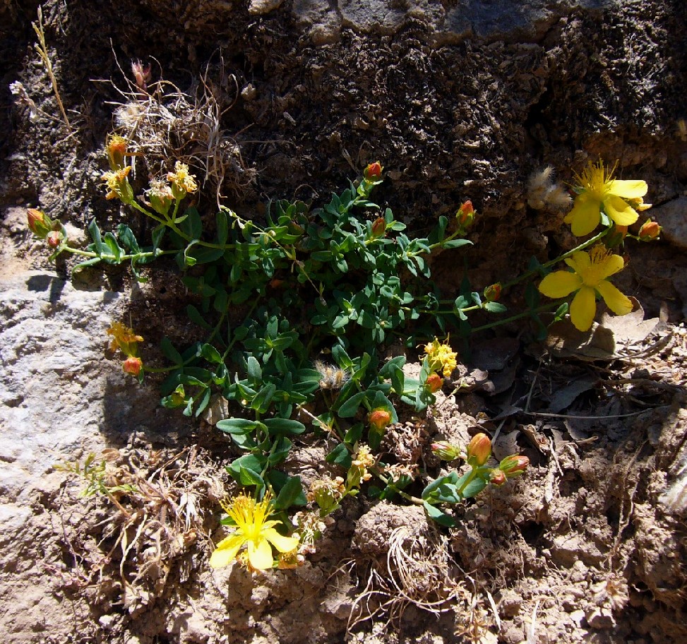 IV - VI, Phrygana, steinige Hänge (200 - 700 m) Synonyme: English name: Weltweite Verbreitung: Die Art wird nach Robson und Strid als intermediär zwischen Hypericum trichocaulon und Hypericum perfoliatum gesehen. Werner Greuter und Rainer Karl beschreiben sie in der Publikation "Ein neues Johanniskraut von den Kykladen (Ägäis, Griechenland): Hypericum (sect. Drosocarpium) perfoliatum subsp. phitosianum (Hypericaceae)" als Hypericum perfoliatum ssp. phitosianum Greuter & , während Panayiotis Trigas sie in der Publikation "A new Hypericum (sect. Drosocarpium, Hypericaceae) from the Cyclades Islands (Greece)" als Hypericum cycladicum Trigas bezeichnet. Diese Namensgebung wurde auch von VPG (Vascular Plants of Greece) übernommen. Hypericum perfoliatum hat im im Vergleich zu Hypericum deutlich mehr Blüten (5 - 70), die aus bis zu 3 Knoten entspringen können.