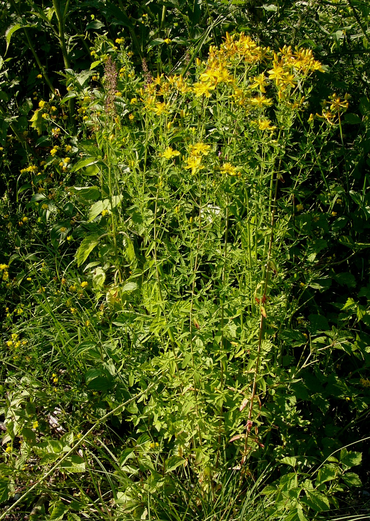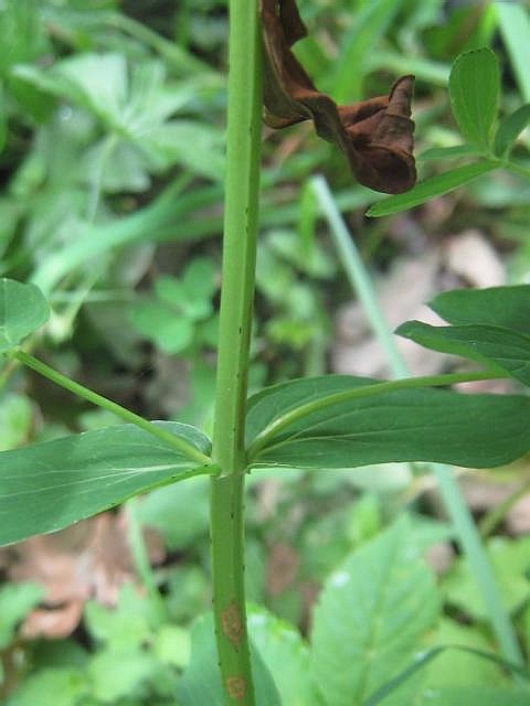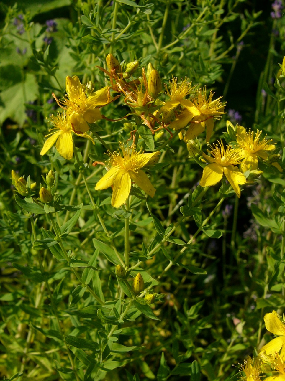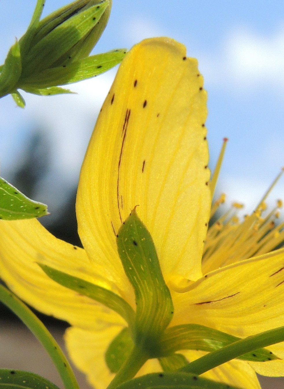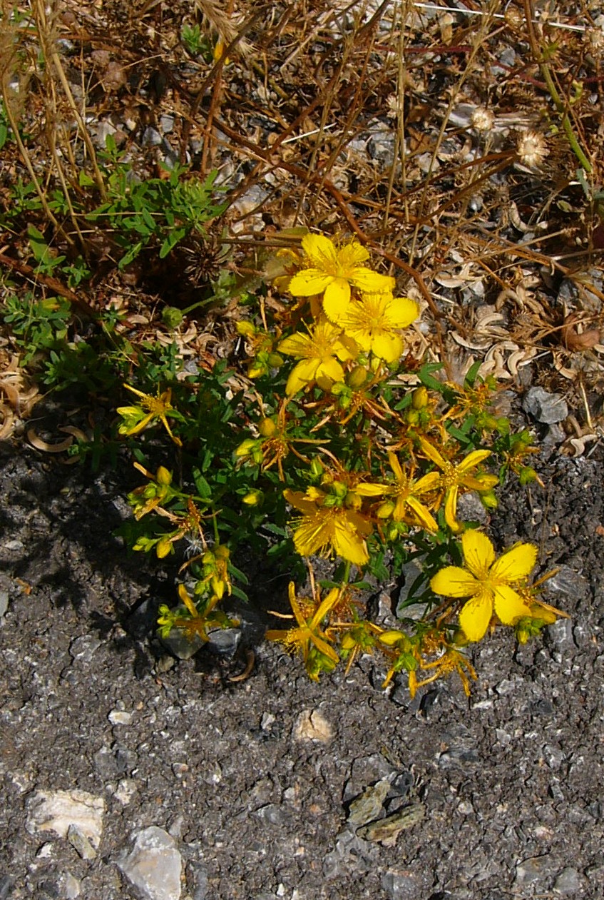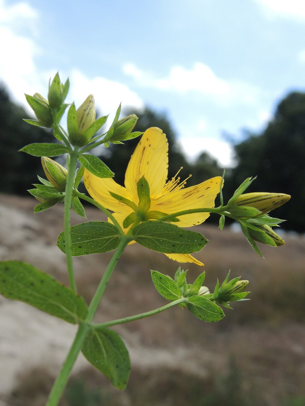 Hypericum - Pflanze aufrecht, kahl, wenig verzweigt, mit roten oder schwarzen Punkten/Drüsen, Kelchblätter ganzrandig oder mit sitzenden Drüsen, schmal, spitz, Blätter gegenständig, lanzettlich oder eiförmig, Staubbeutel gelb