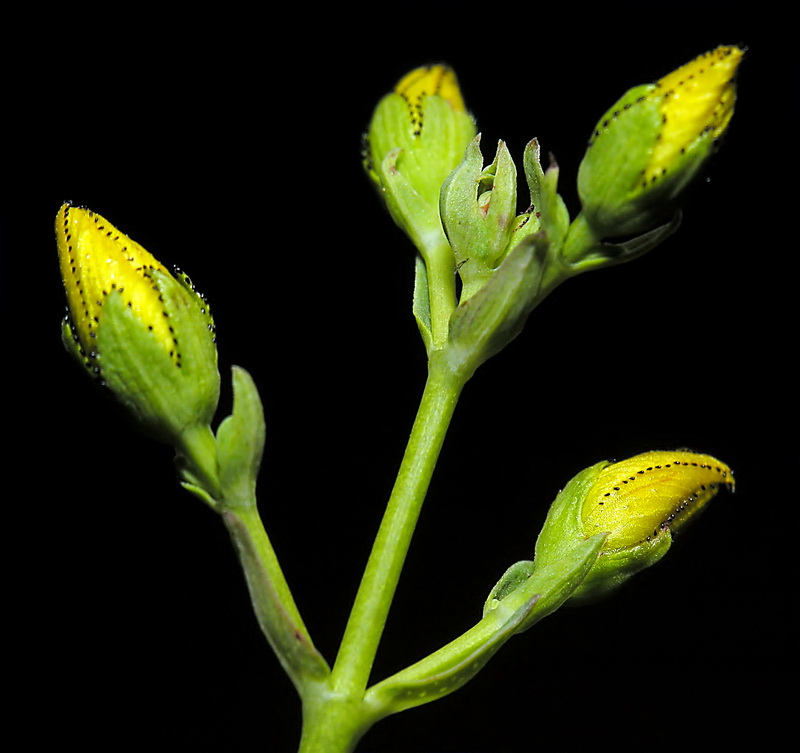 Blätter gegenständig, linealisch, Blütenknospen gelb