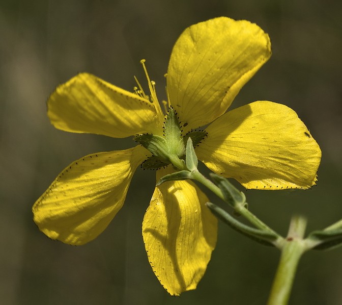 Krone gelb, Kronblätter 12 - 15 mm lang, oft mit schwarzen Punkten