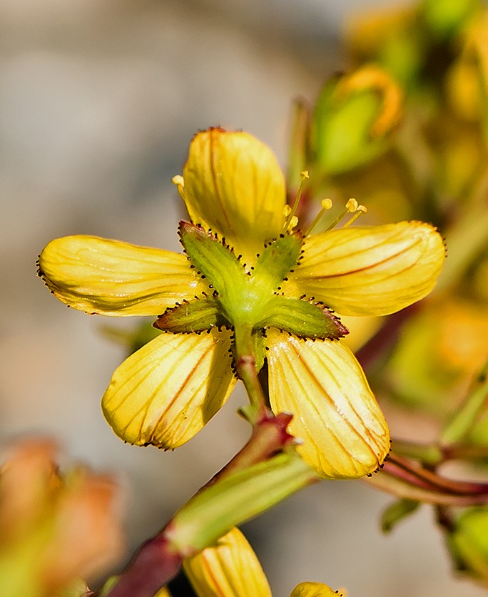 VI - VII, Steinige Hänge, schattige Gebüsche (1500 - 2100 m) Synonyme: English name: Weltweite Verbreitung: In Europa (nur in Granada und Almeria) kommt nur die Unterart Hypericum elongatum ssp. callithyrsum (Cosson) A. Ramos Nuñez vor. calli = schön, Thyrsus/Thyrse = ähriger oder traubiger Blütenstand, bei dem Zymen als Teilblütenstände an die Stelle der Einzelblüten treten.