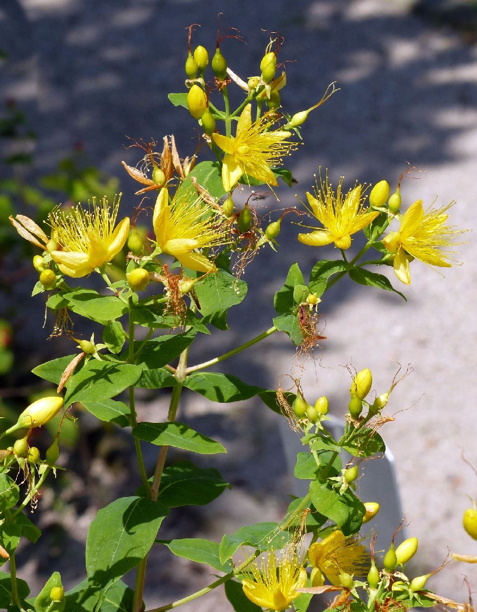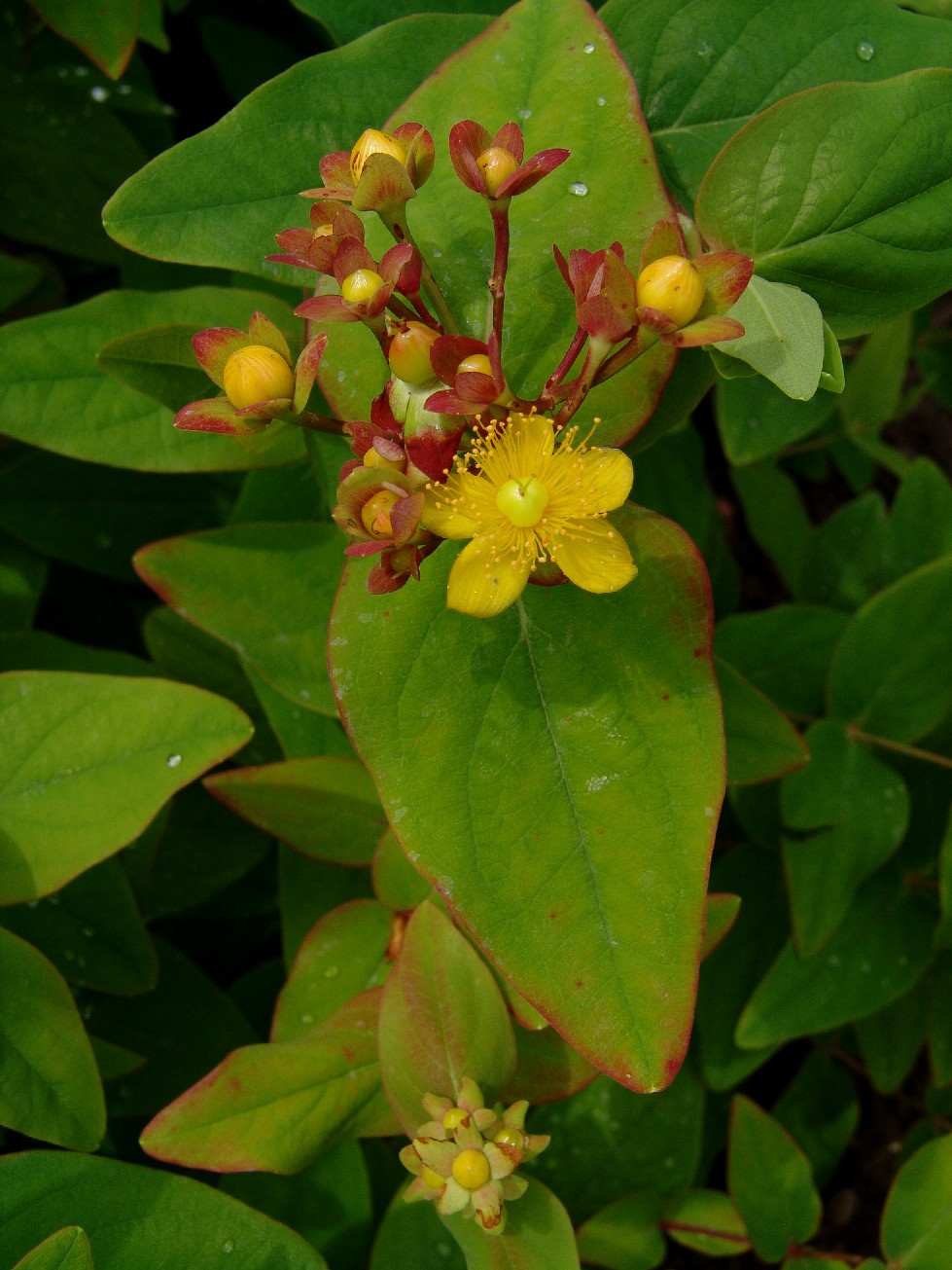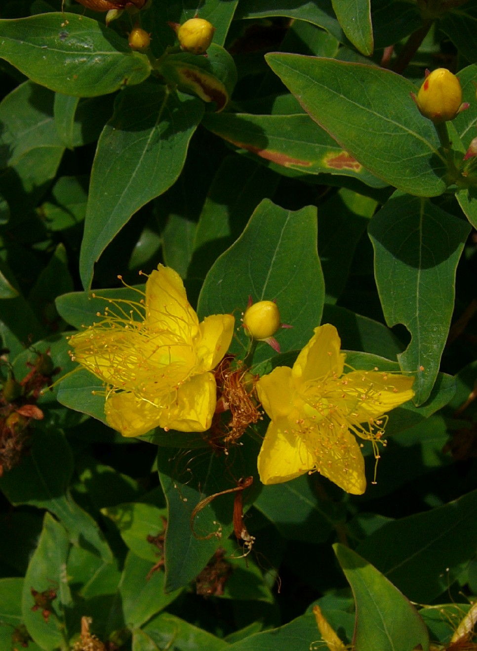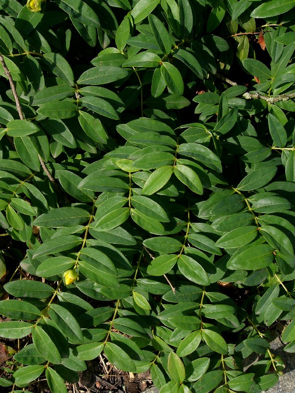 Hypericum - Pflanze kahl, ohne schwarze Flecken oder Drüsen, Blätter gegenständig, groß