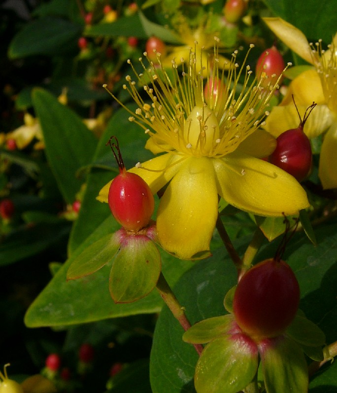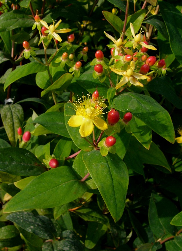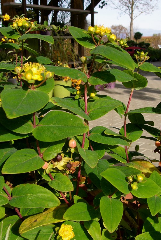 VII - XI, Zierpflanze Bastard Hypericum androsaemum x Hypericum hircinum Synonyme: English name: Verbreitung in Deutschland: Gefährdung in Deutschland: Weltweite Verbreitung: Eingebürgert in: Mehrere Sorten: 'Loke':