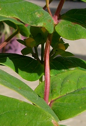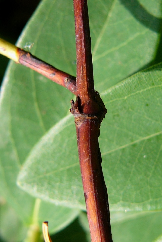 Zweige bräunlich, 2- kantig, Blätter gegenständig,