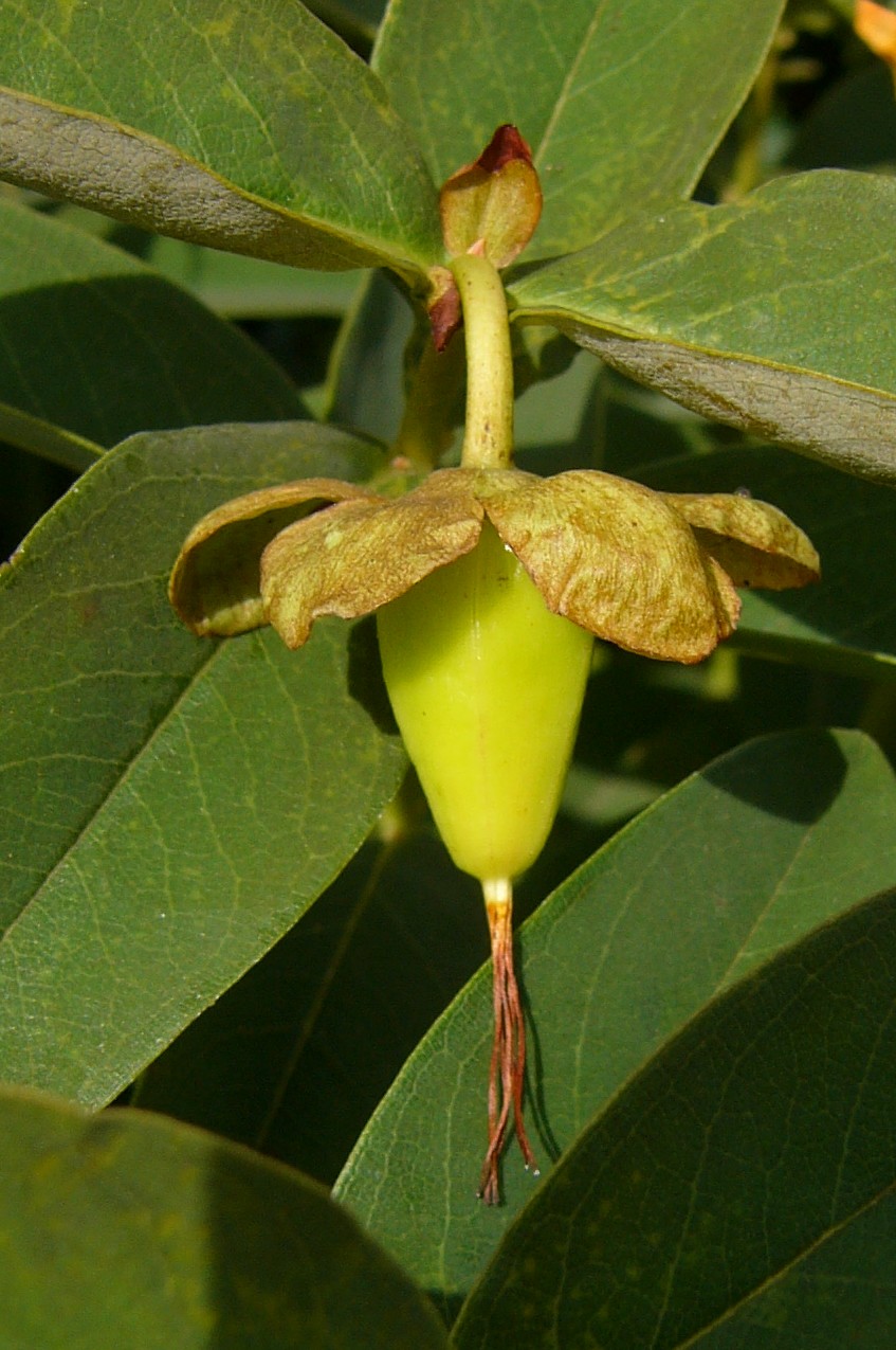 Früchte zuerst grün, Fruchtschnäbel 3 - 5 mal so lang wie die Frucht, ältere Früchte rot, ledrig