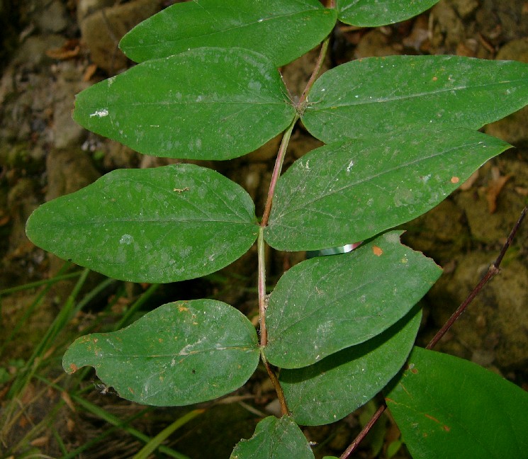 Blätter gegenständig, eiförmig, 3 bis 10 cm lang, 1 - 6 cm breit, sitzend