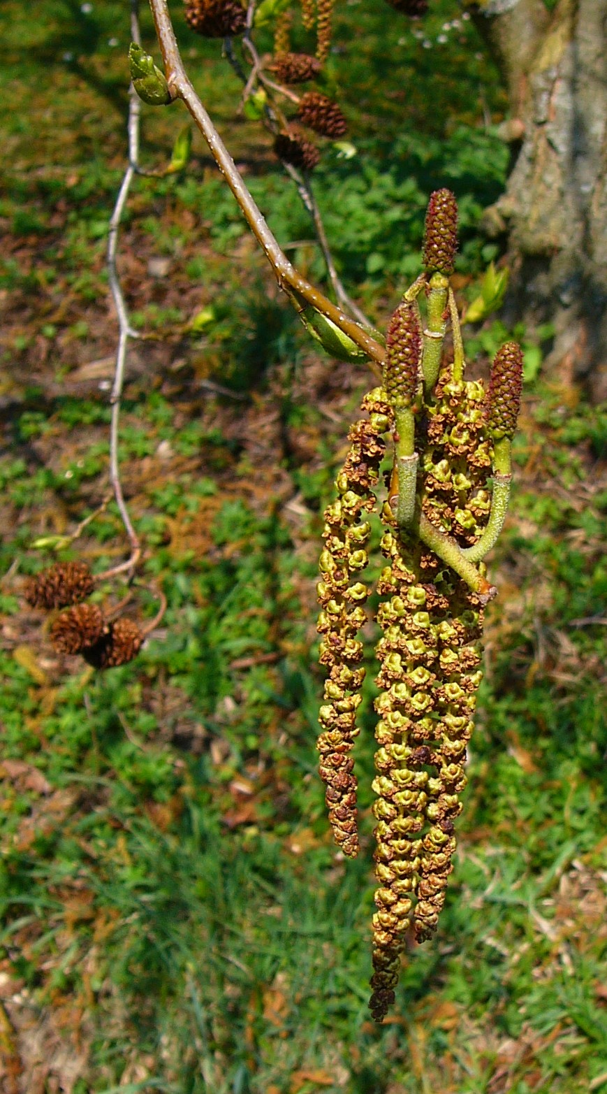 Männliche Kätzchen 5 - 8 cm lang, hängend, zu 3 - 4 in Büscheln,