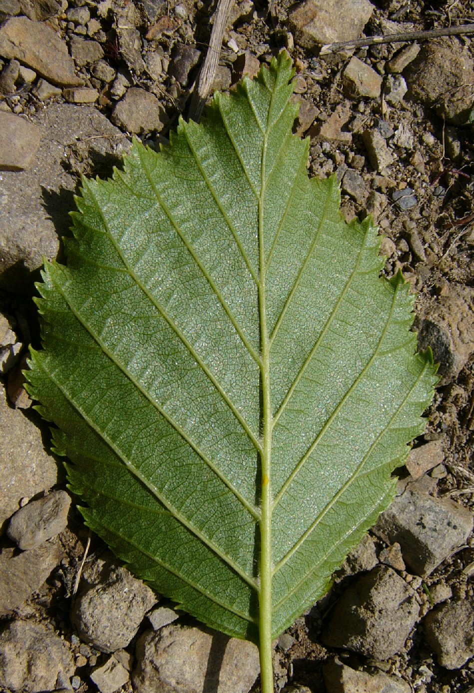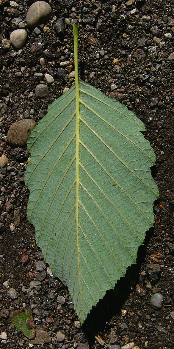 Blätter +/- eiförmig, doppelt gesägt, mit 6 - 8 Seitennervenpaaren,