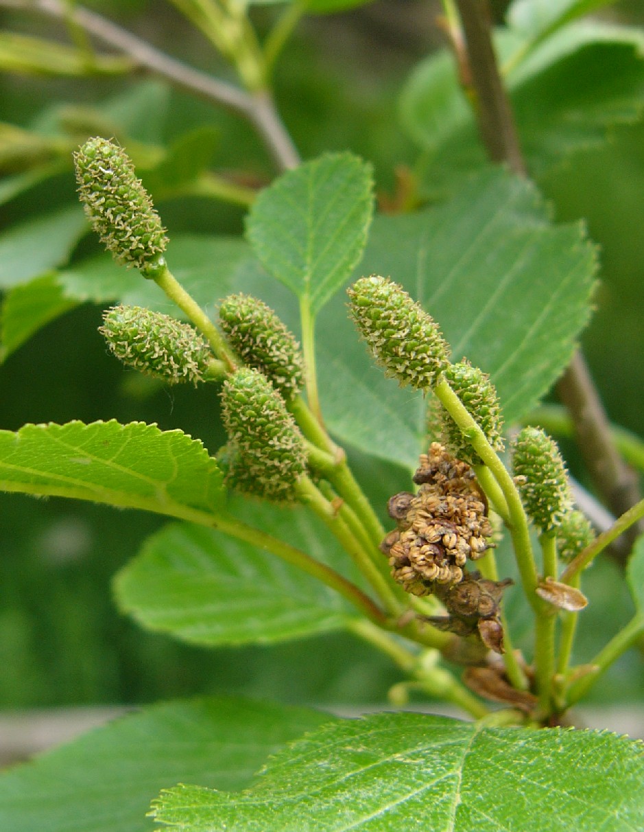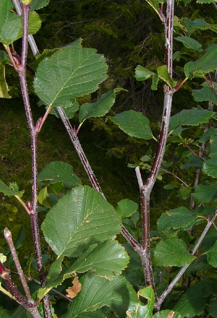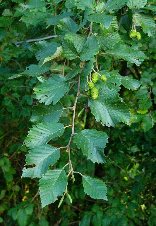 Alnus - Blätter vorne +/- spitz, am Grund +/- keilig